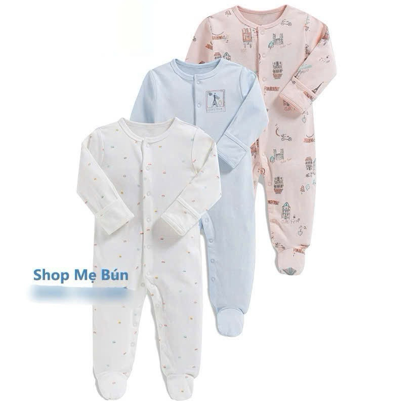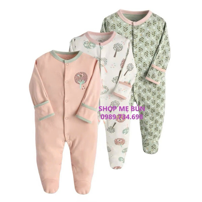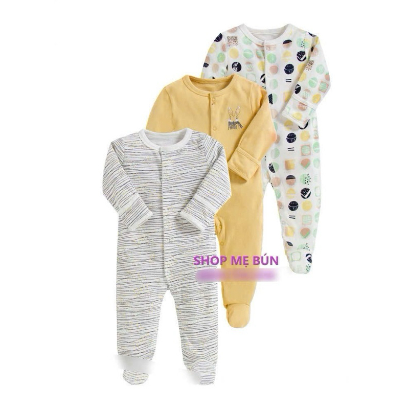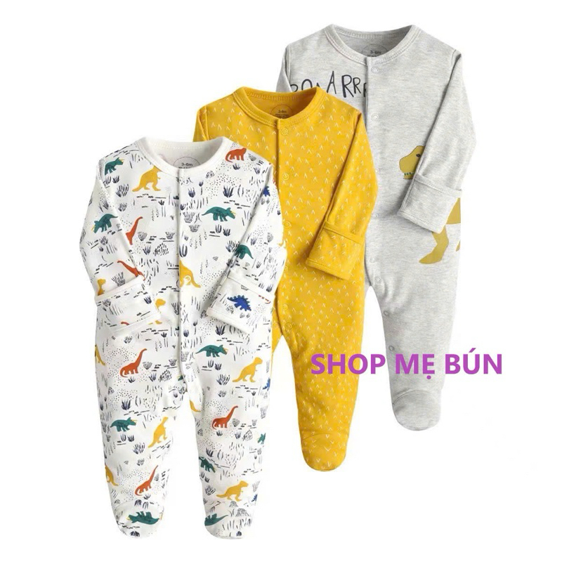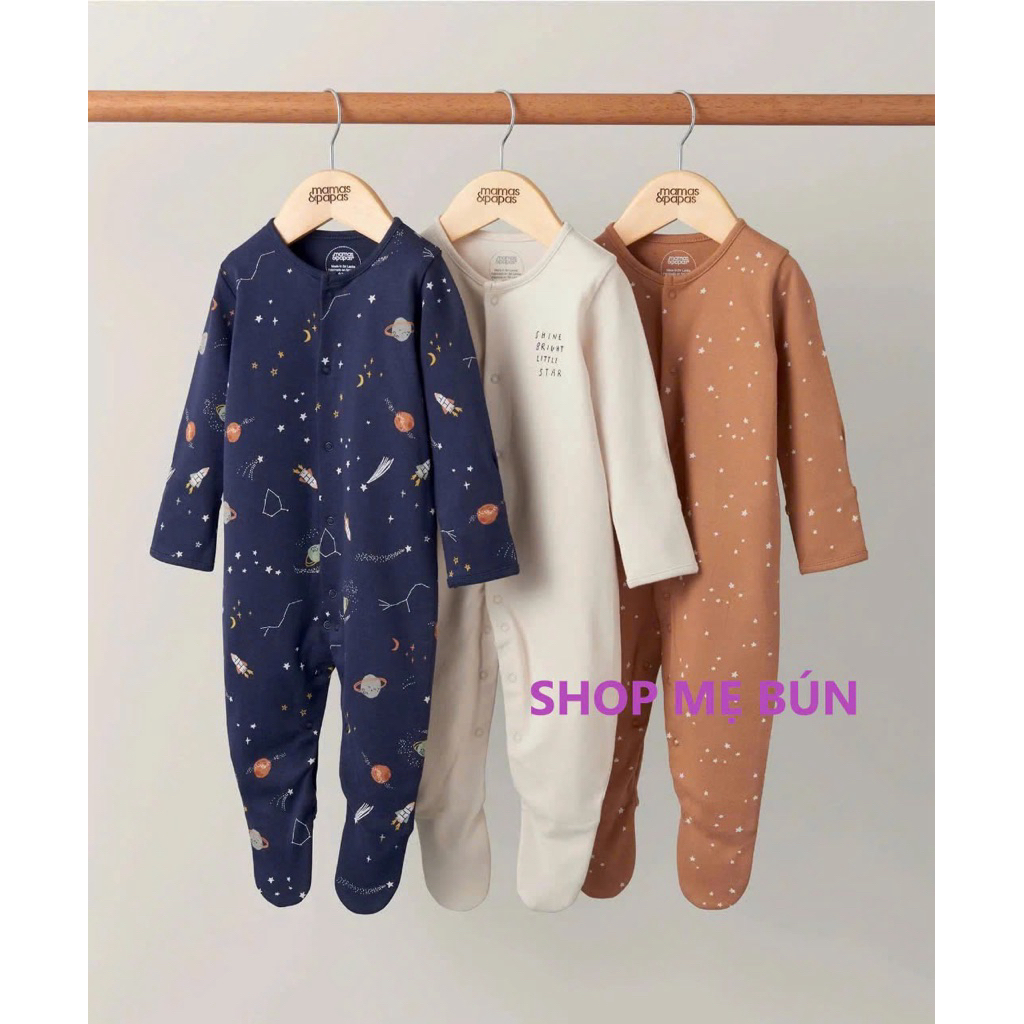 3 bộ Bodysleep/sleepsuit/ bộ dài liền thân mamas & papas 100% cotton size 0-12m