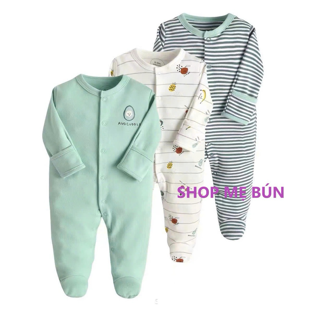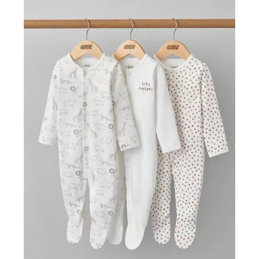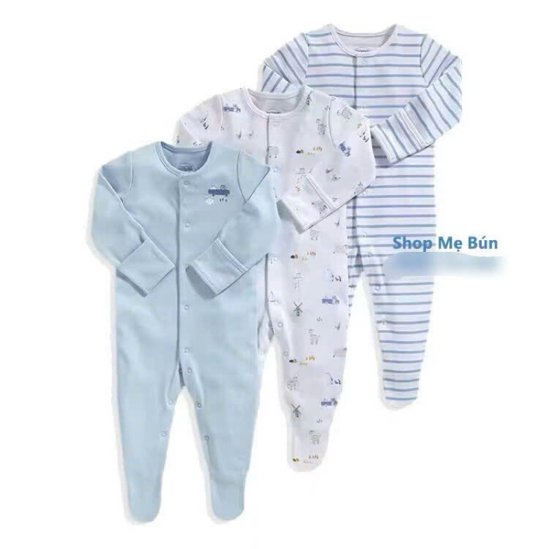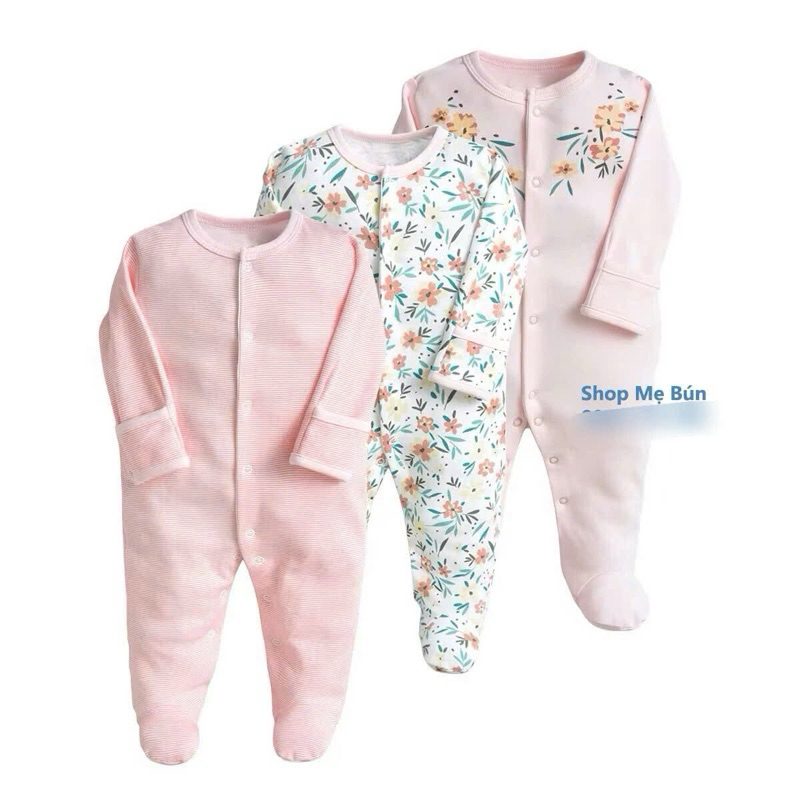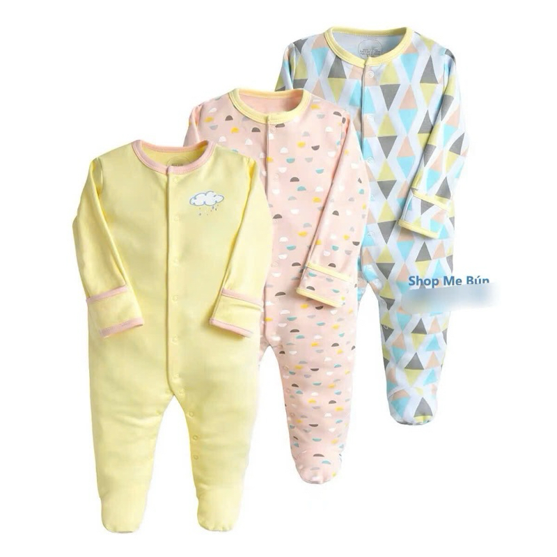 3 bộ Bodysleep/sleepsuit/ bộ dài liền thân mamas & papas 100% cotton size 0-12m