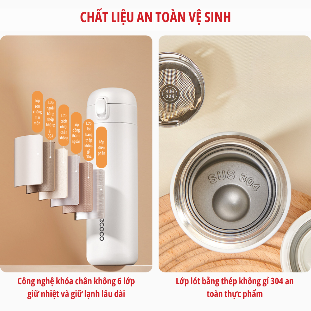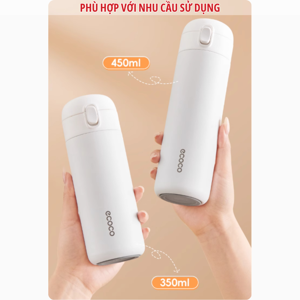 Bình giữ nhiệt thể thao, văn phòng ECOCO 350ml và 450ml thế hệ mới, chất liệu inox 304 cách nhiệt 2 lớp cao cấp