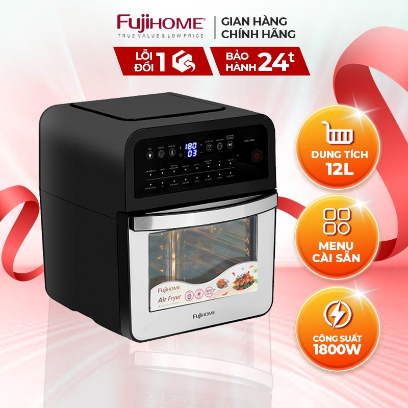 Nồi chiên không dầu FUJIHOME A12D dung tích 12L - Bảng điều khiển điện tử cảm ứng - Menu cài đặt sẵn