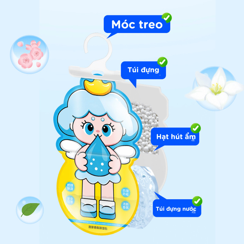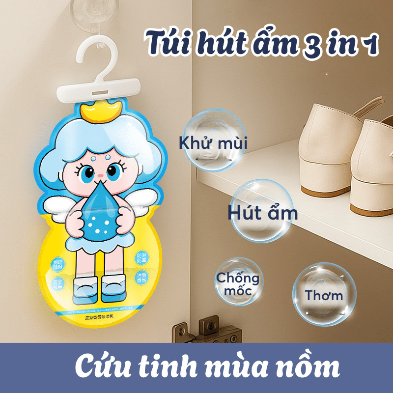 Túi Hút Ẩm 2 ngăn 3in1 Khử Mùi Toả Hương Chống Ẩm Mốc AMOS, Túi Thơm Treo Tủ Quần Áo, Tủ Giày Hương Hoa Lan/Dành Dành