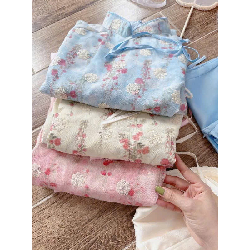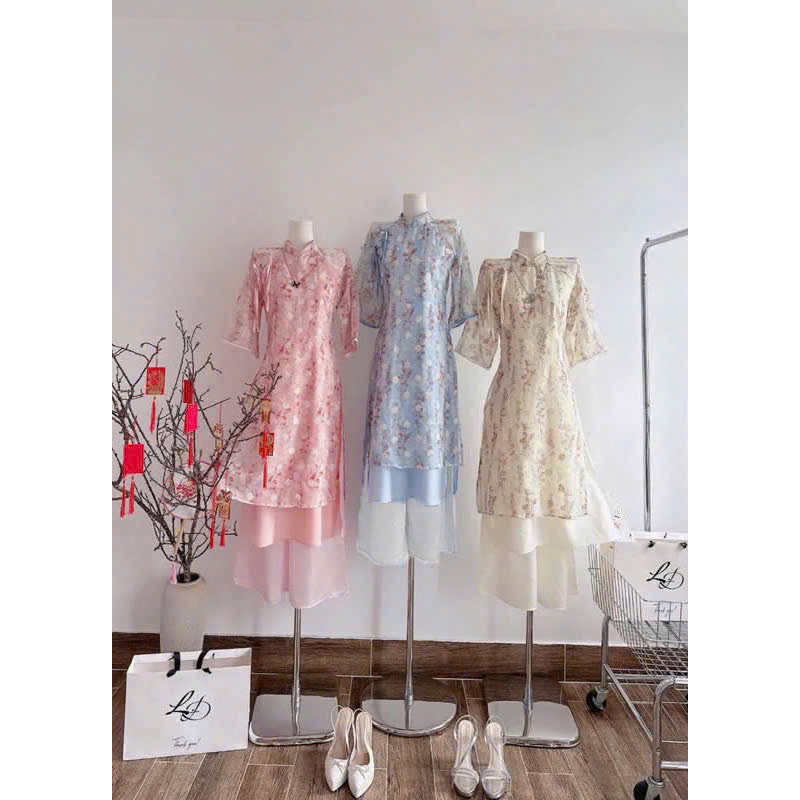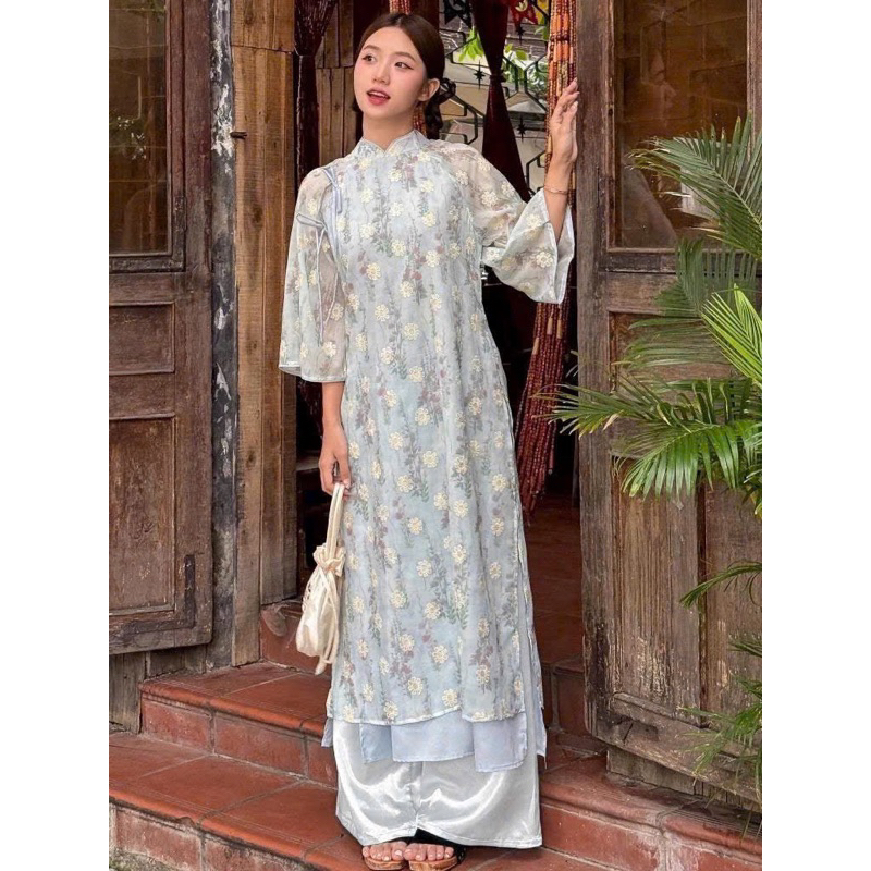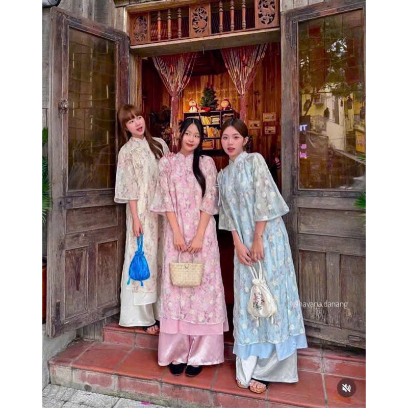 [𝟑 𝐒𝐈𝐙𝐄 / 𝐂𝐇𝐎̣𝐍 𝐌𝐀̀𝐔 𝐐𝐔𝐀̂̀𝐍] SET ÁO DÀI ALICE THÊU HOA NỔI HÀNG XỊN ( MYKE BY MY TRÀ 100% )