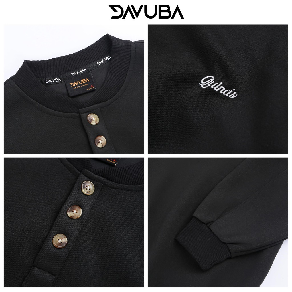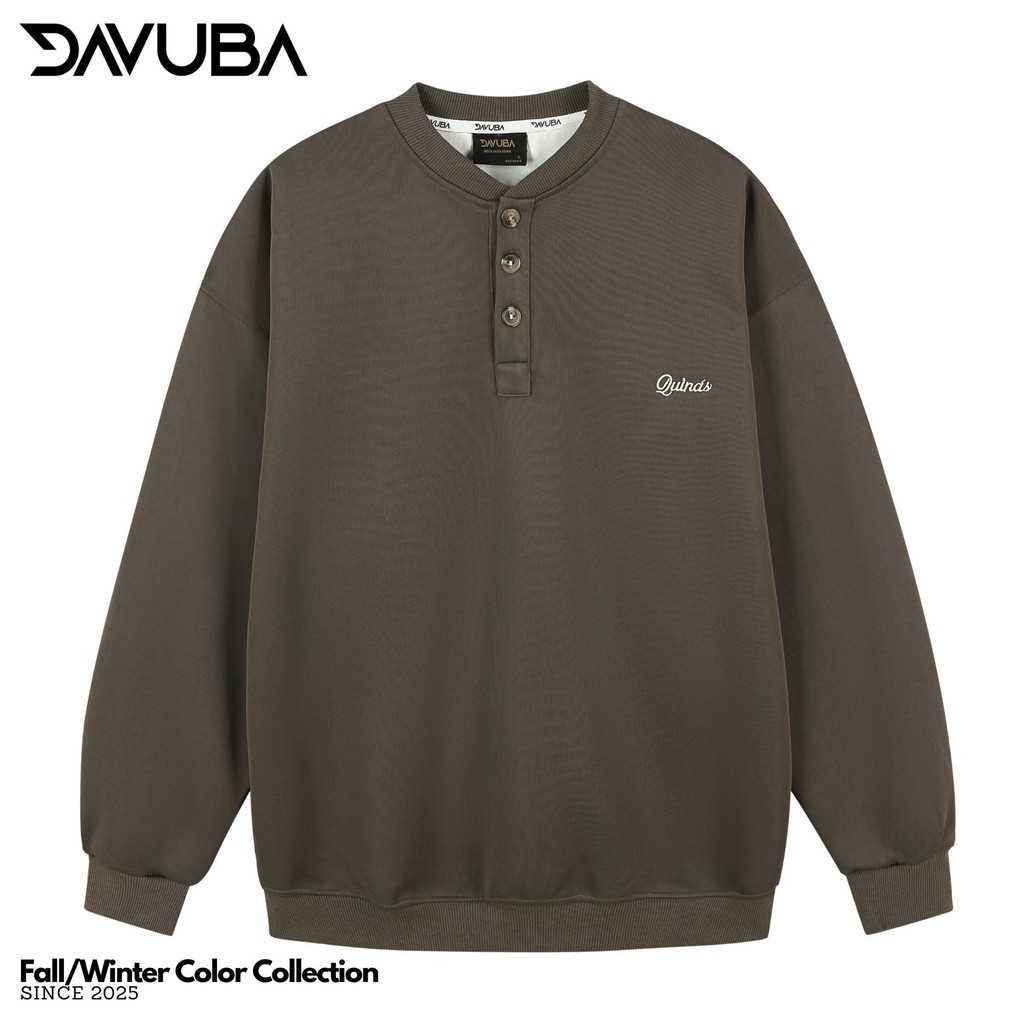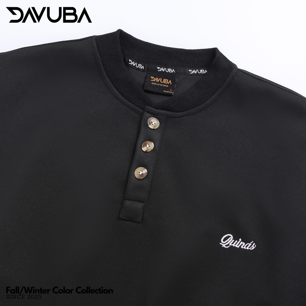 [Mở Bán] [DAVUBA] Áo Sweater cổ tròn 3 cúc form rộng nỉ 2 da nam nữ sm156