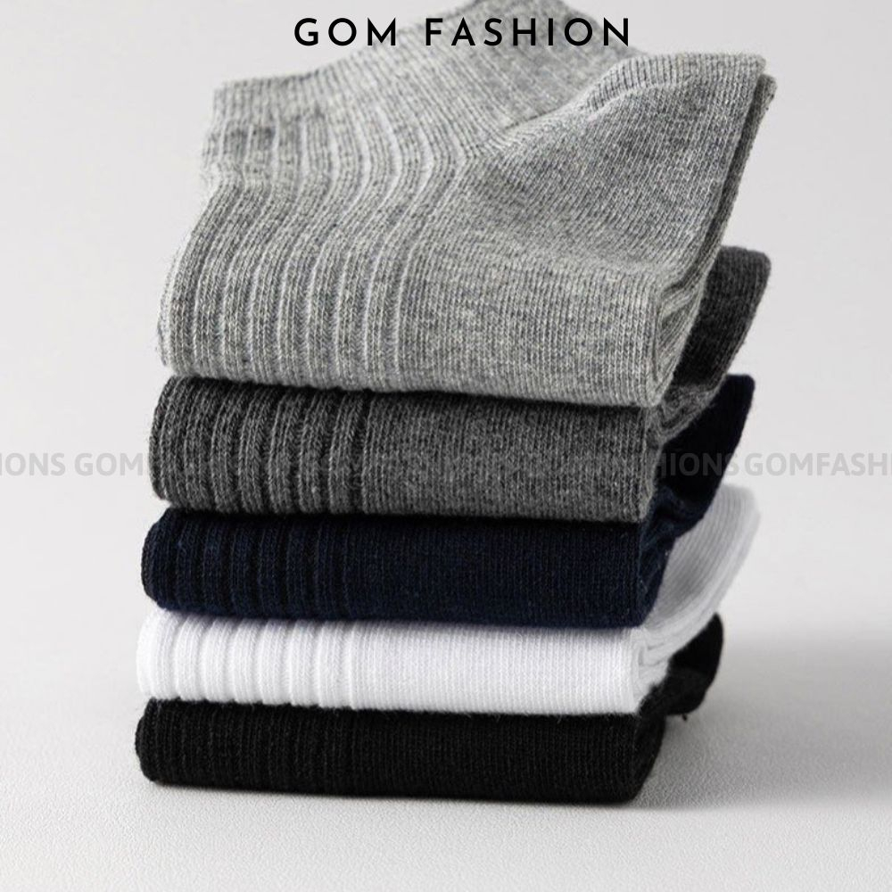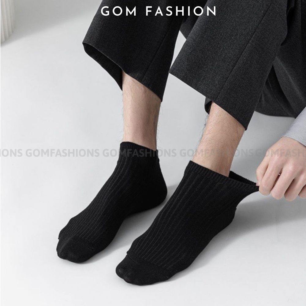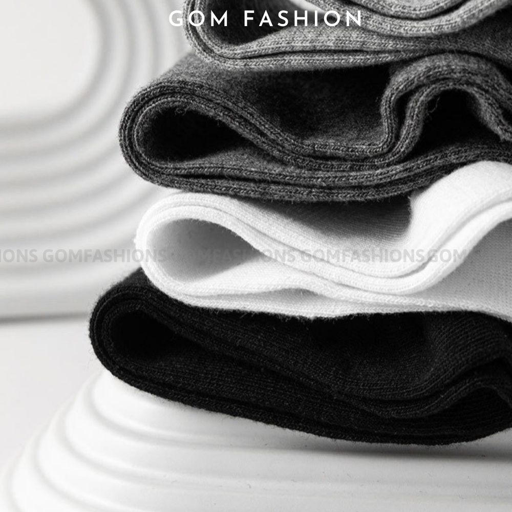 Tất nam cổ ngắn màu trơn GOMTAT, vớ cổ trung trắng đen chất liệu cotton cao cấp hút ẩm thoáng khí êm chân -NT2-FIVE-2005