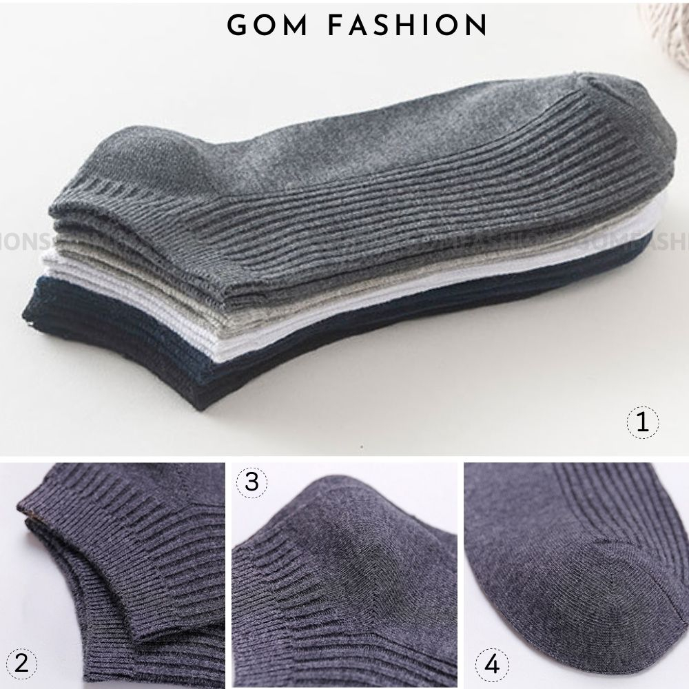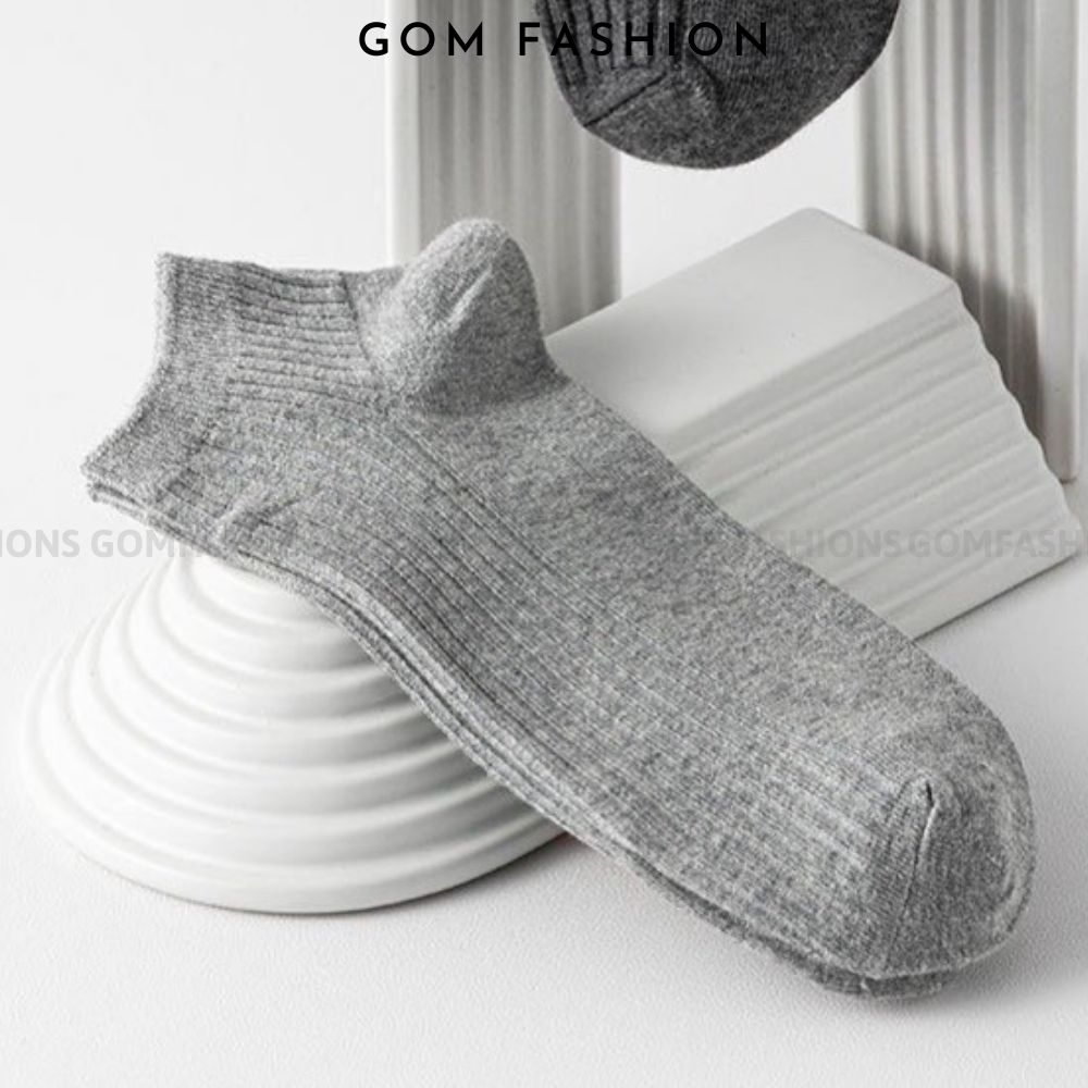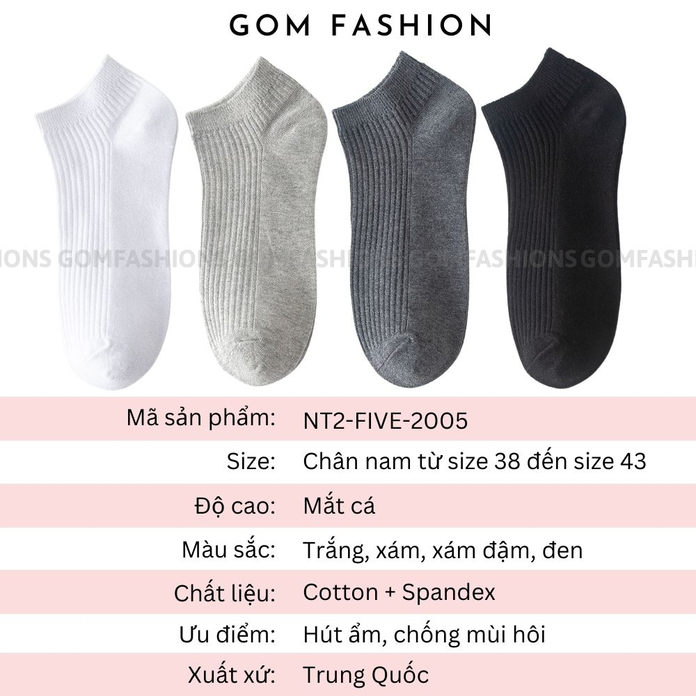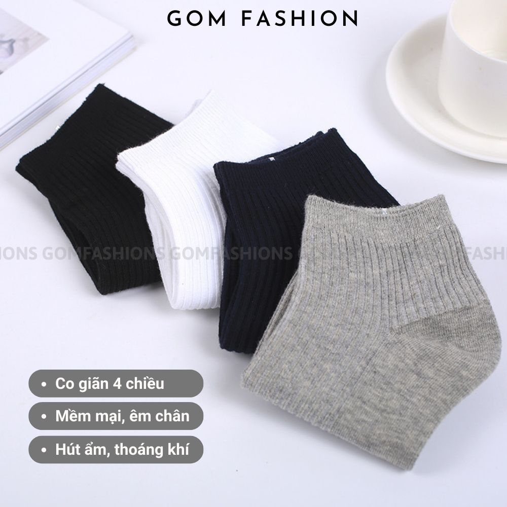 Tất nam cổ ngắn màu trơn GOMTAT, vớ cổ trung trắng đen chất liệu cotton cao cấp hút ẩm thoáng khí êm chân -NT2-FIVE-2005