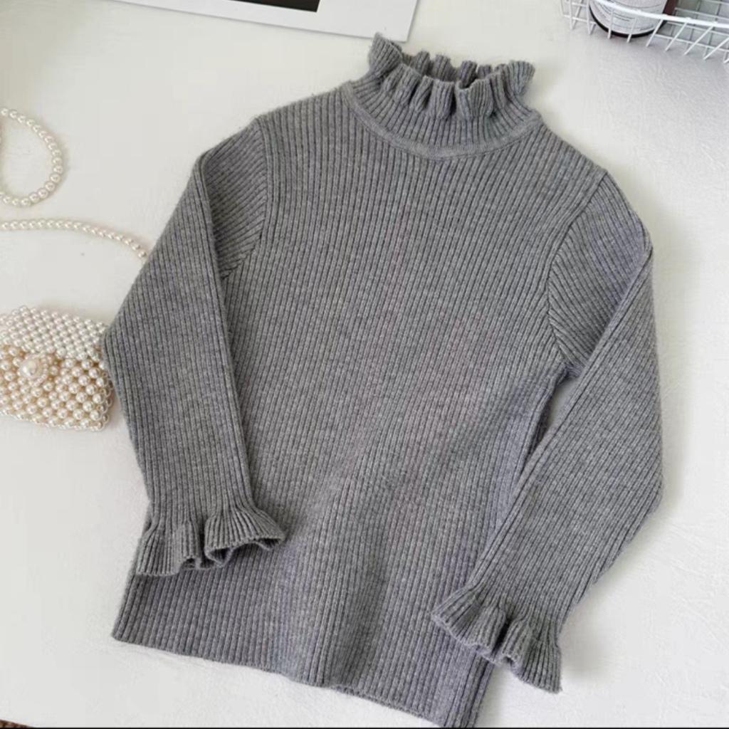 Áo len giữ nhiệt cho bé gái cổ bèo mix đồ siêu đẹp hàng quảng châu, Áo len dệt kim bé gái 1-6 tuổi QC-04