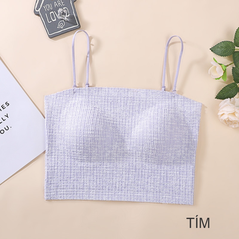 Áo bra ống dáng quây 2 dây mảnh đệm mỏng có thể tháo rời, đính sợi kim tuyến mã FLA631
