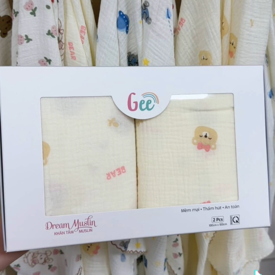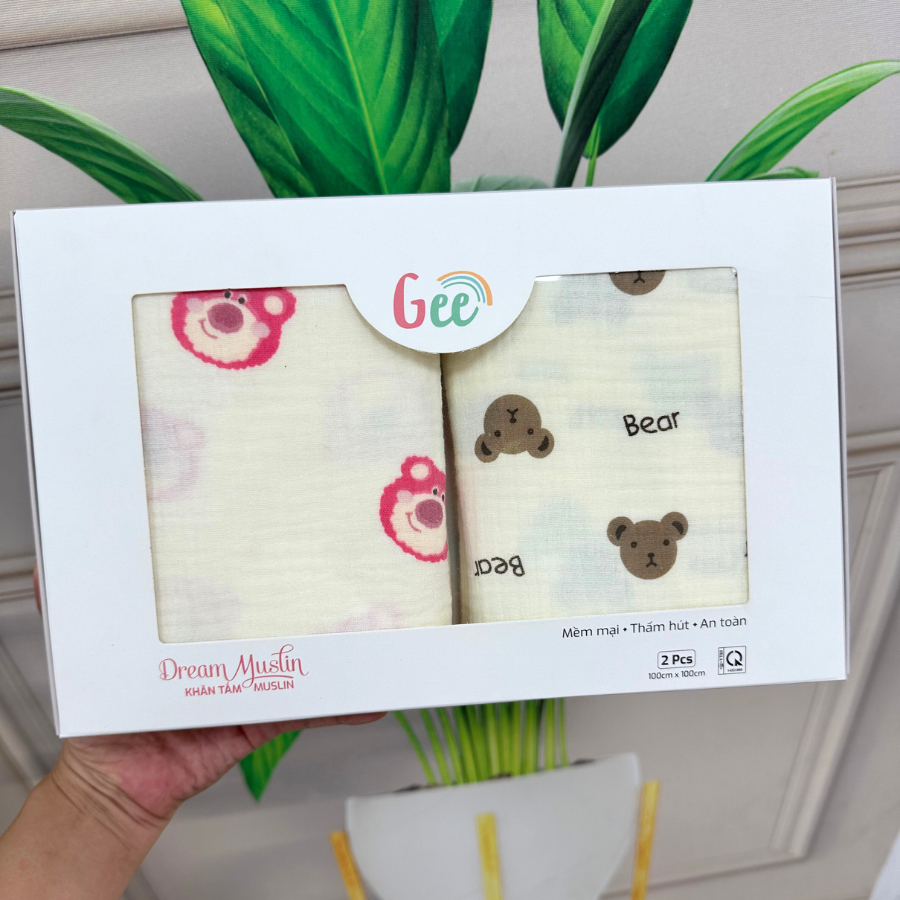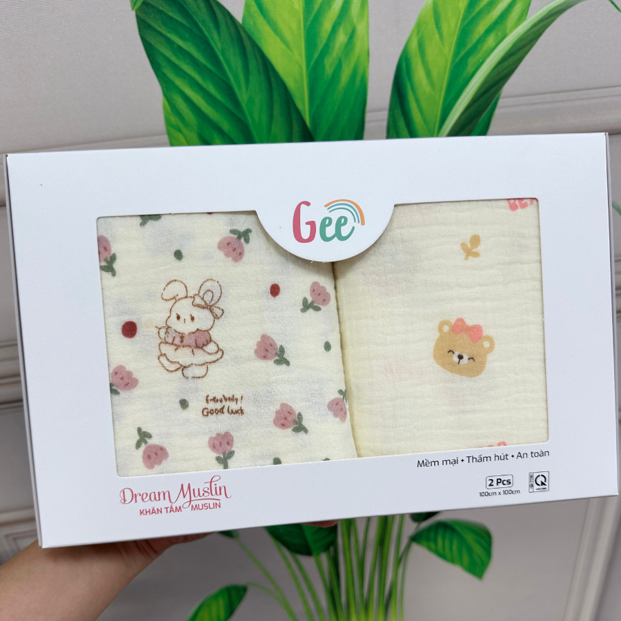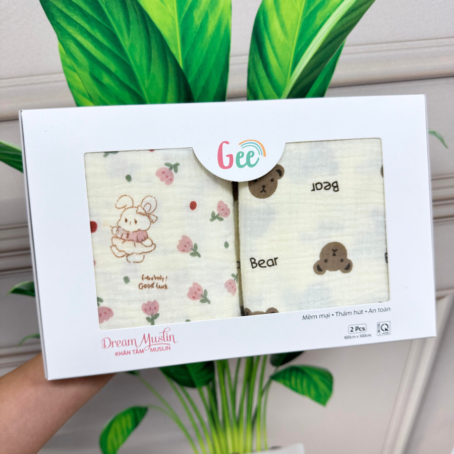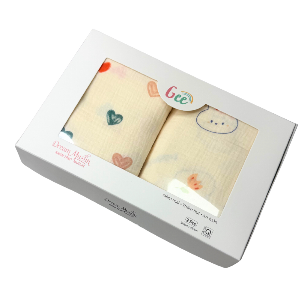 Set 2 khăn tắm Muslin 2 lớp 100% cotton organic mềm mại, thấm hút, an toàn cho bé, kích thước 1m*1m