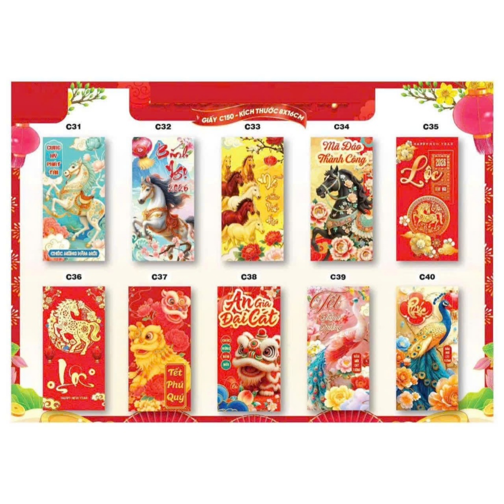 COMBO BAO LÌ XÌ TRUYỀN THỐNG, CHIPI, BAO LÌ XÌ NGANG, TAG TREO TẾT BÍNH THÂN 2026 CÁC LOẠI (Có 6 phân loại)