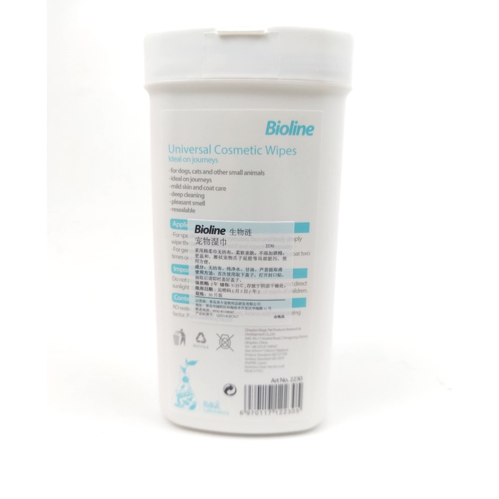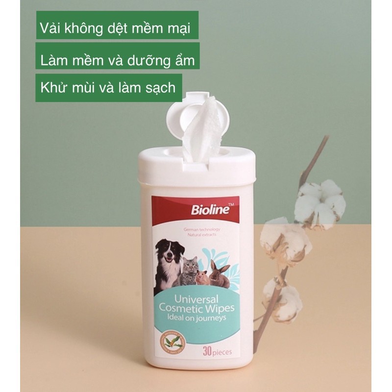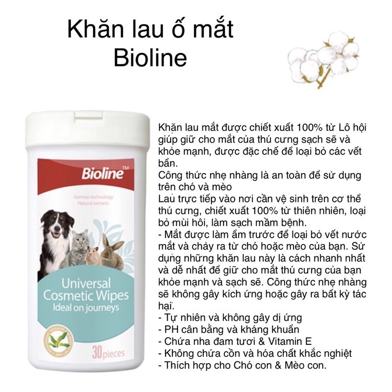 KHĂN LAU MẮT CHO CHÓ MÈO THÚ CƯNG Bioline Universal Cosmetic Wipes Hộp 30 chiếc Vệ sinh mắt Làm sạch vết ố ở mắt