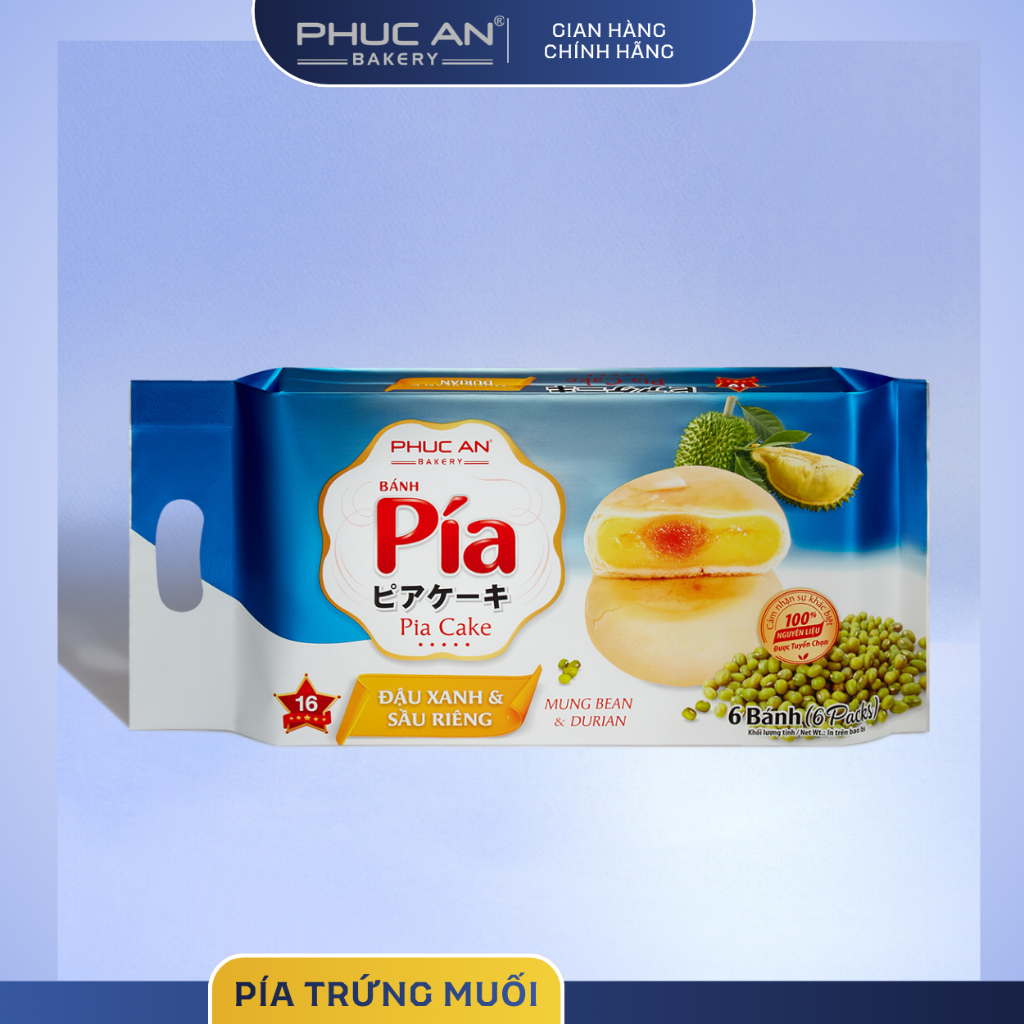 Bánh Pía Phúc An Số 16 - Đậu Xanh, Sầu Riêng Mix Trứng Muối - 300gr/ 6cái/túi