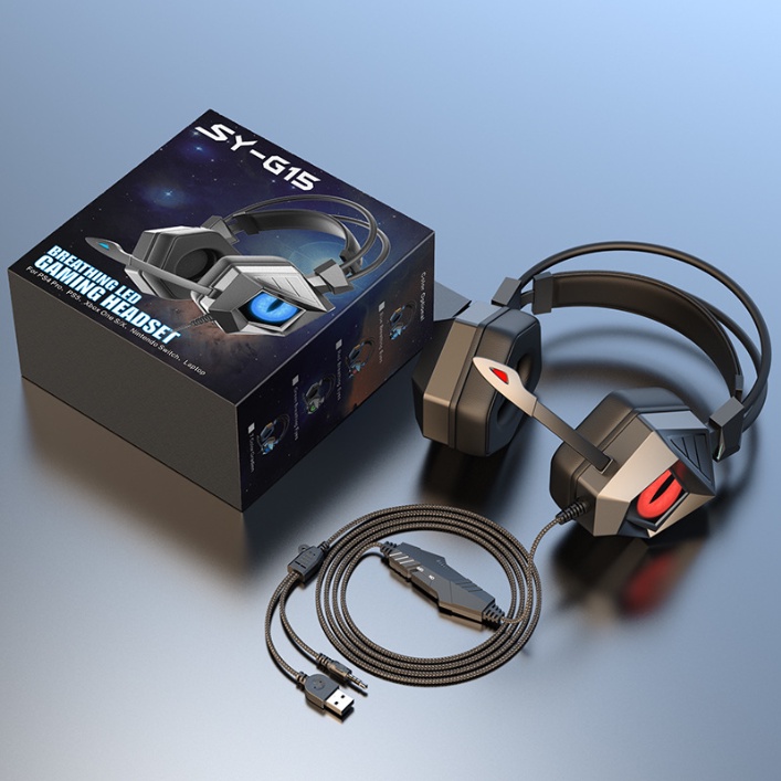 Tai nghe chụp tai máy tính GAMING SY-G15 có đèn LED màu, có mic đàm thoại, headphone chơi game trên điện thoại , laptop.