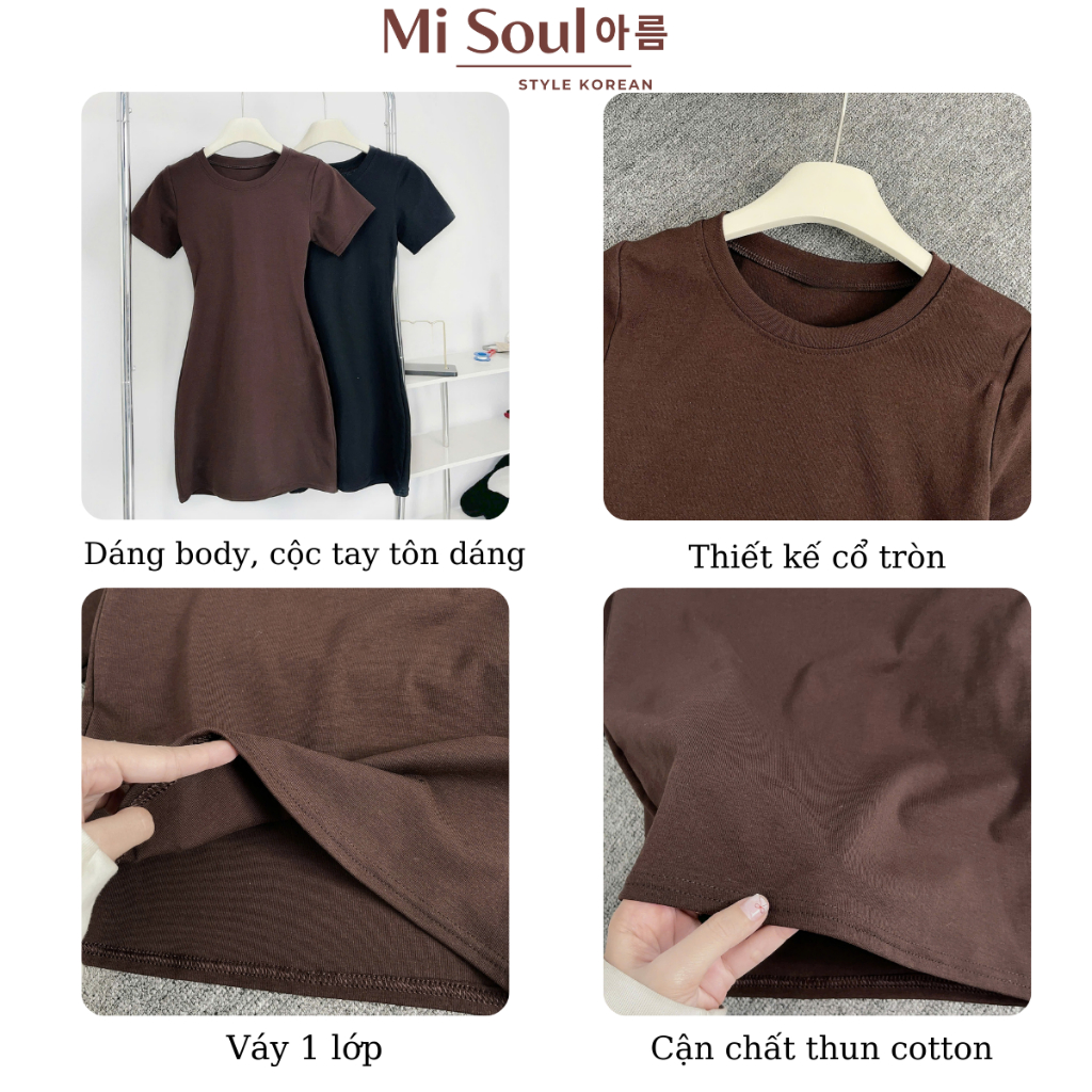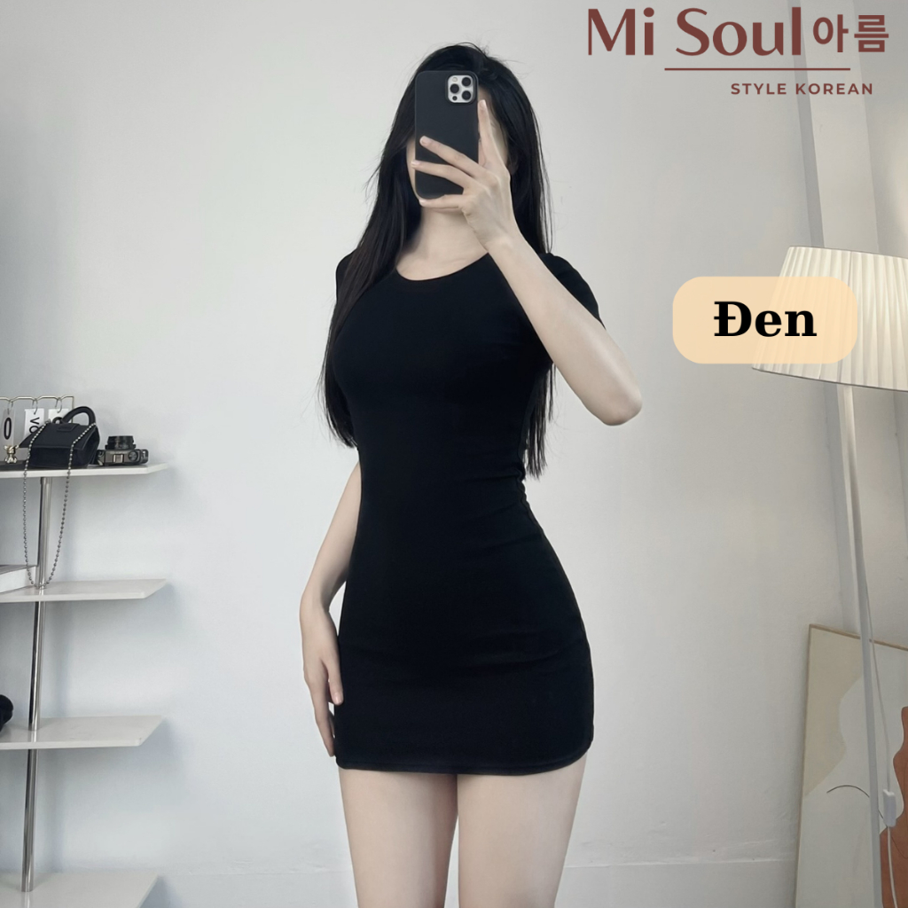 Váy Body Dáng Ngắn Cổ Tròn Cộc Tay Chất Thun Cotton Co Dãn MiSoul, Đầm Mini Ôm Dáng Cổ Tròn 377