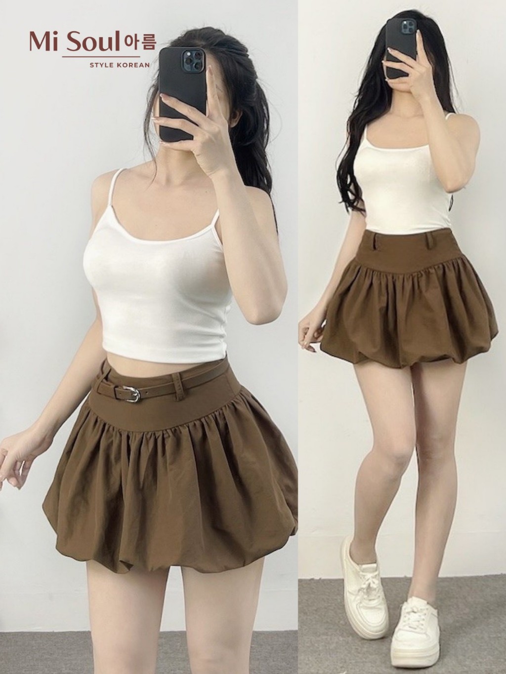 Chân Váy Bí Cạp Cao Chất Gió Nhăn Xếp Ly Nữ 2 Lớp Xoè Bồng Misoul, Váy Qủa Bí Dáng Mini BigSize 385