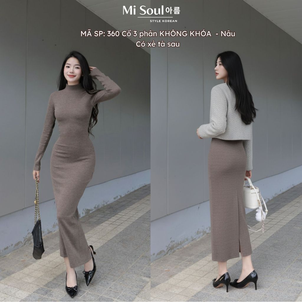 Váy Len Ôm Dáng Dài Xẻ Phía Sau/ Không Xẻ, Cổ 3 Phân/ Cổ Tròn Chất Len Lông Thỏ Misoul, Váy Maxi Mùa Đông Ôm Body 360