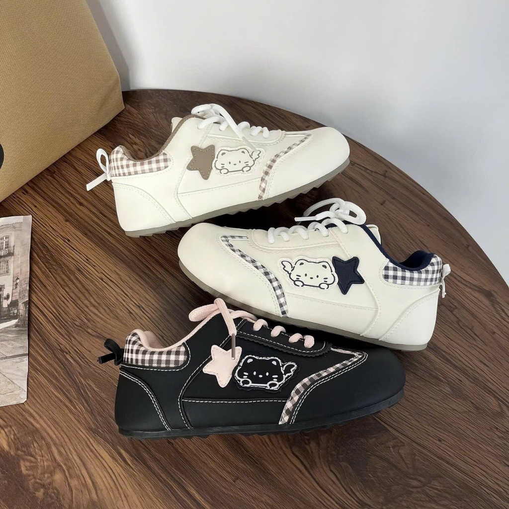 Giày Thể Thao Nữ CAT Đế Thấp Siêu Nhẹ 3 Mầu Phối Nơ Kẻ Caro