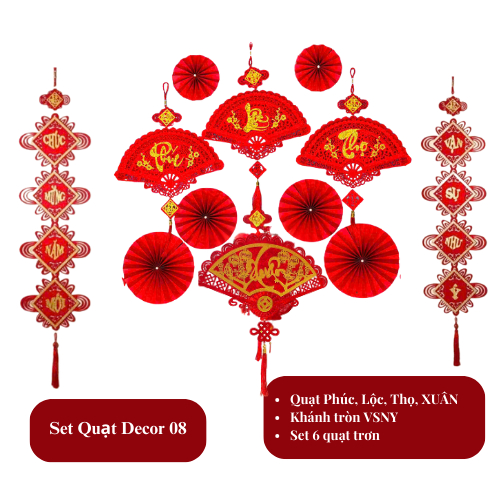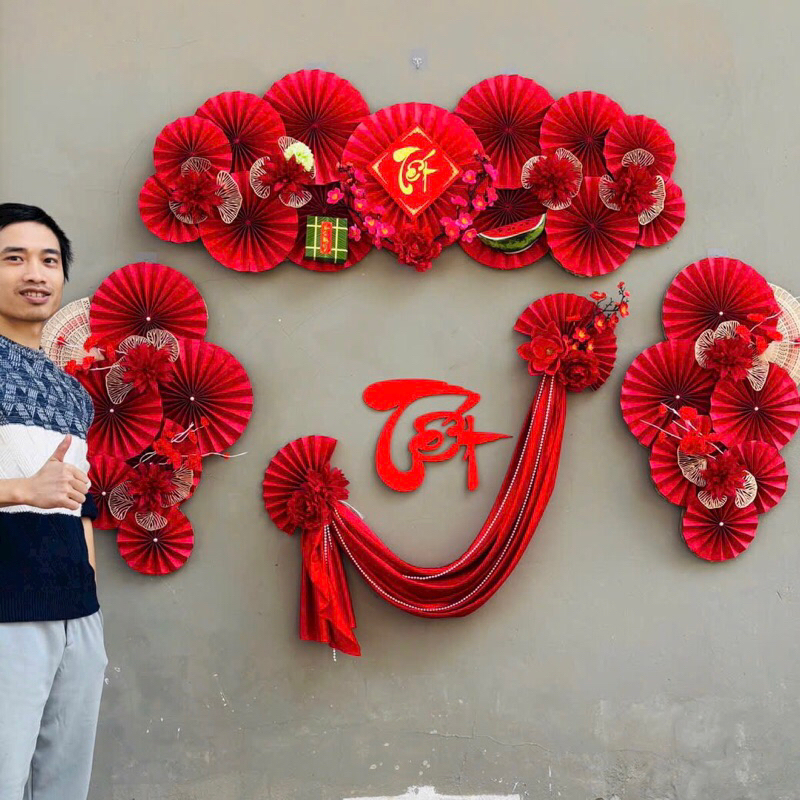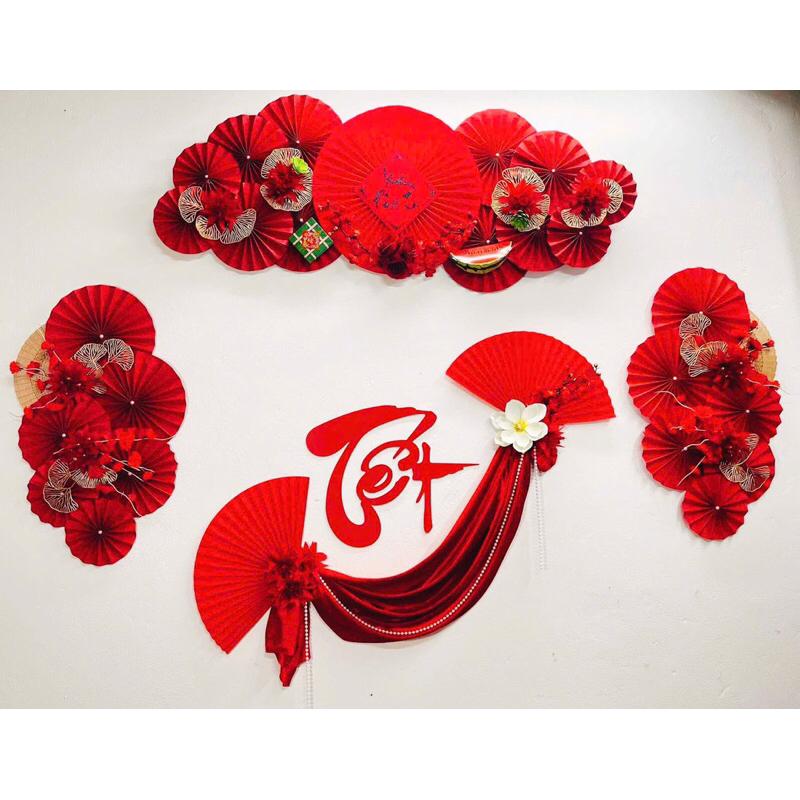 COMBO PHỤ KIỆN TRANG TRÍ DECOR TẾT NGUYÊN ĐÁN 2026 BÍNH NGỌ. SET BACKGROUND QUẠT HOA, CHỮ TẾT TREO NHÀ, QUÁN CAFE