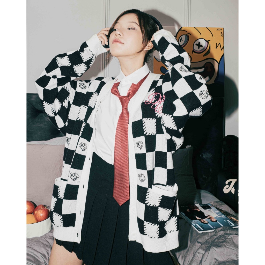Áo khoác DirtyCoins Checkerboard Knit Cardigan