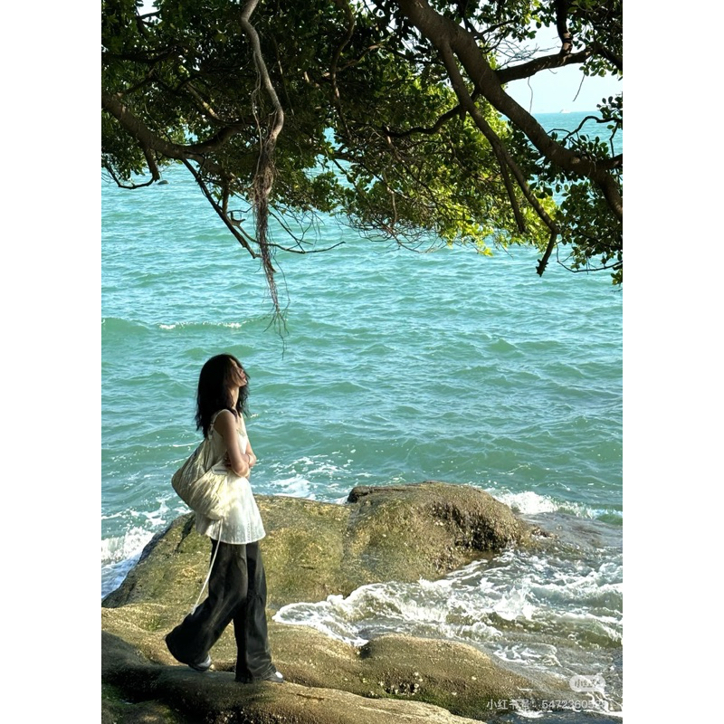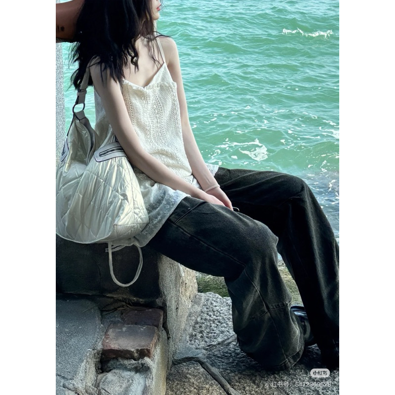 Áo hai dây kiểu phối lưới dây rút eo phong cách vintage M7007