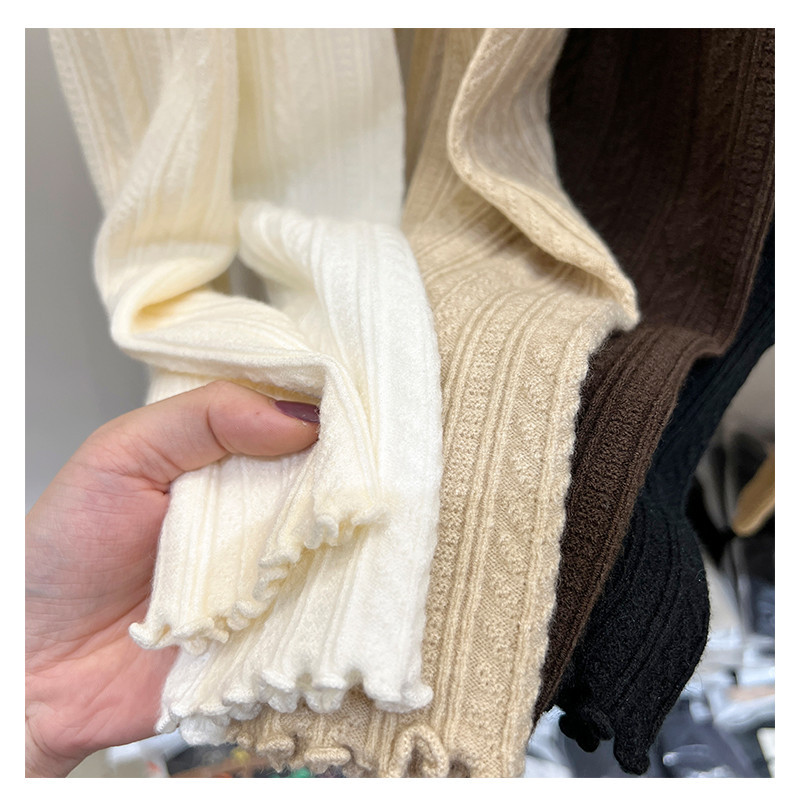 Suxi Mùa Thu Áo Len Mới Retro Đơn Giản Cổ Cao Tay Dệt Kim 240805