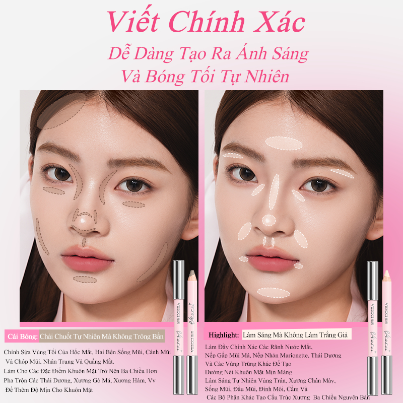Bút Tạo Khối VEECCI Hai Đầu Trang Điểm Mượt Mà Tự Nhiên Trang Điểm Lâu Trôi 2g+2g