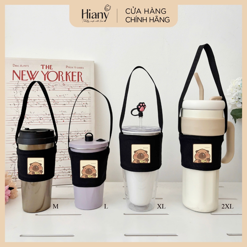 [KHÁCH IU IB TƯ VẤN SIZE NHÉ Ạ] Túi đựng bình giữ nhiệt ly cốc canvas ĐEN Hiany in hình capybara PX08