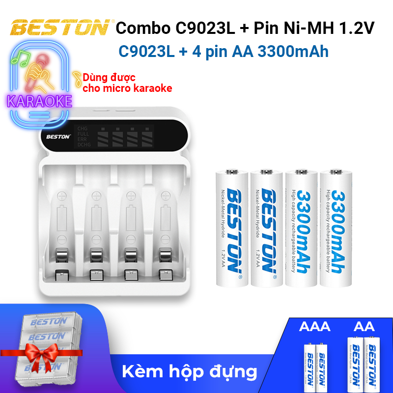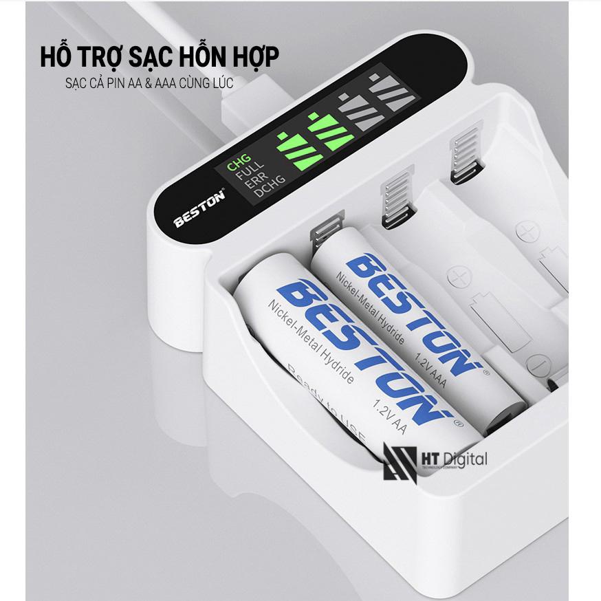 Bộ sạc kèm pin AA/AAA Ni-MH 1.2V, sạc nhanh tự ngắt an toàn, dùng cho micro không dây, đèn flash, máy ảnh, đo huyết áp