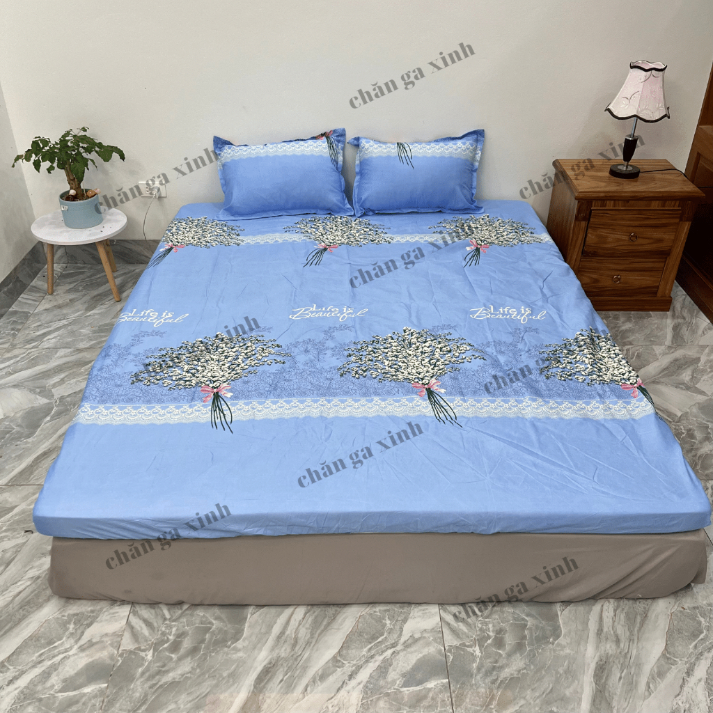 Ga trải giường cotton poly drap giường bo chun không kèm vỏ gối được chọn màu