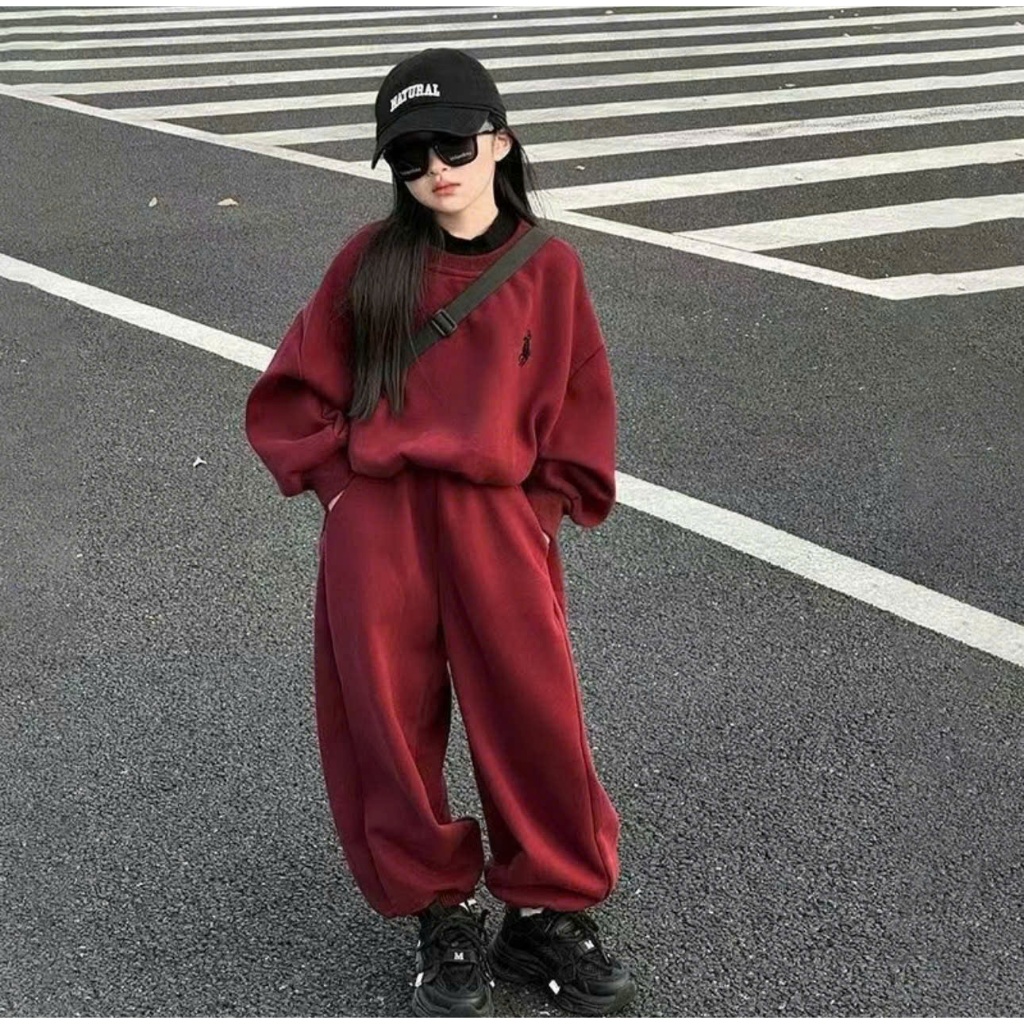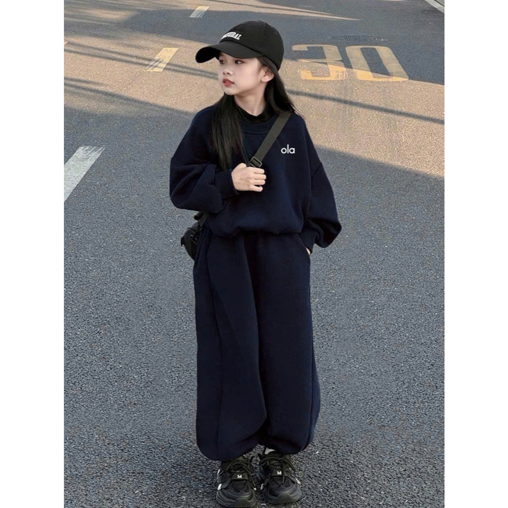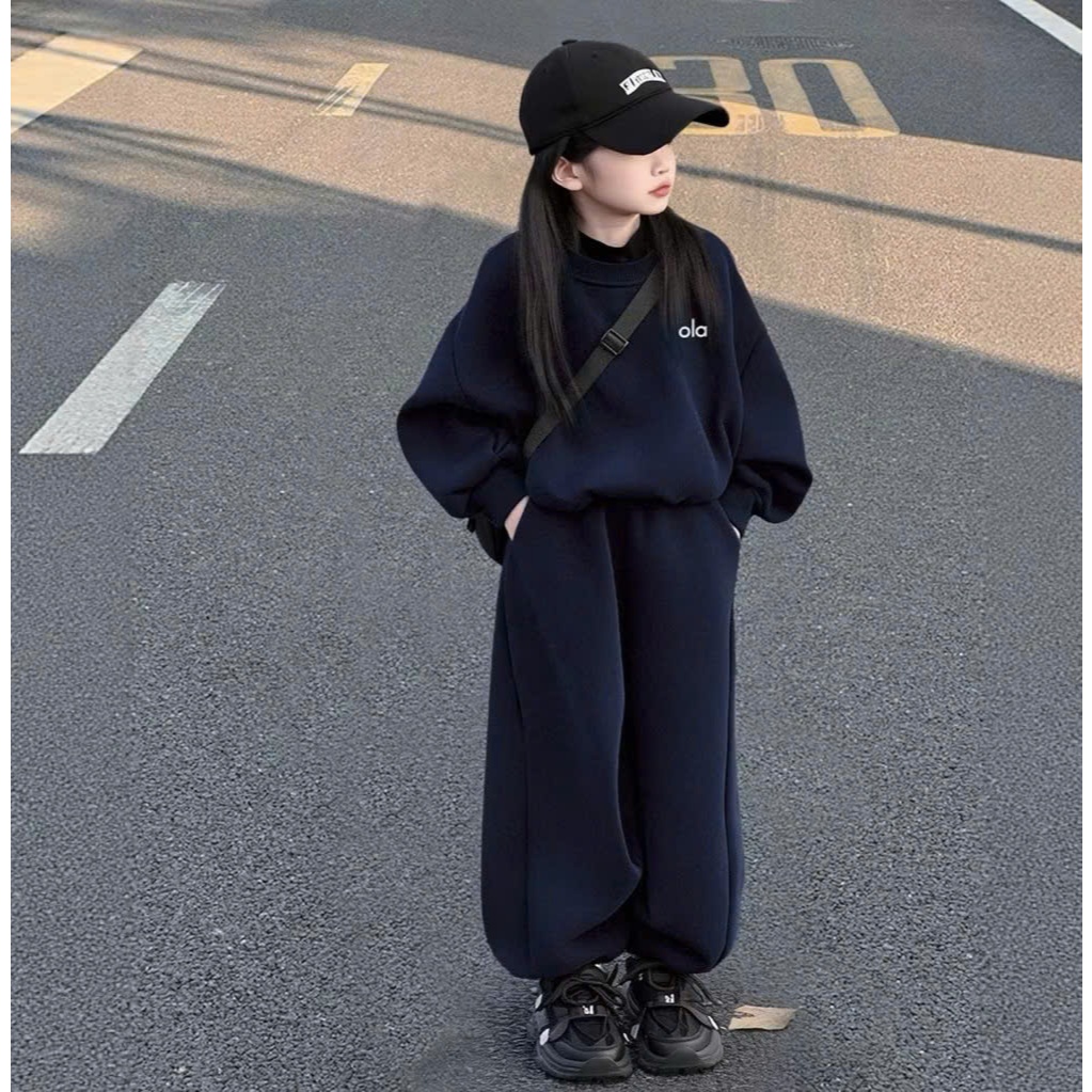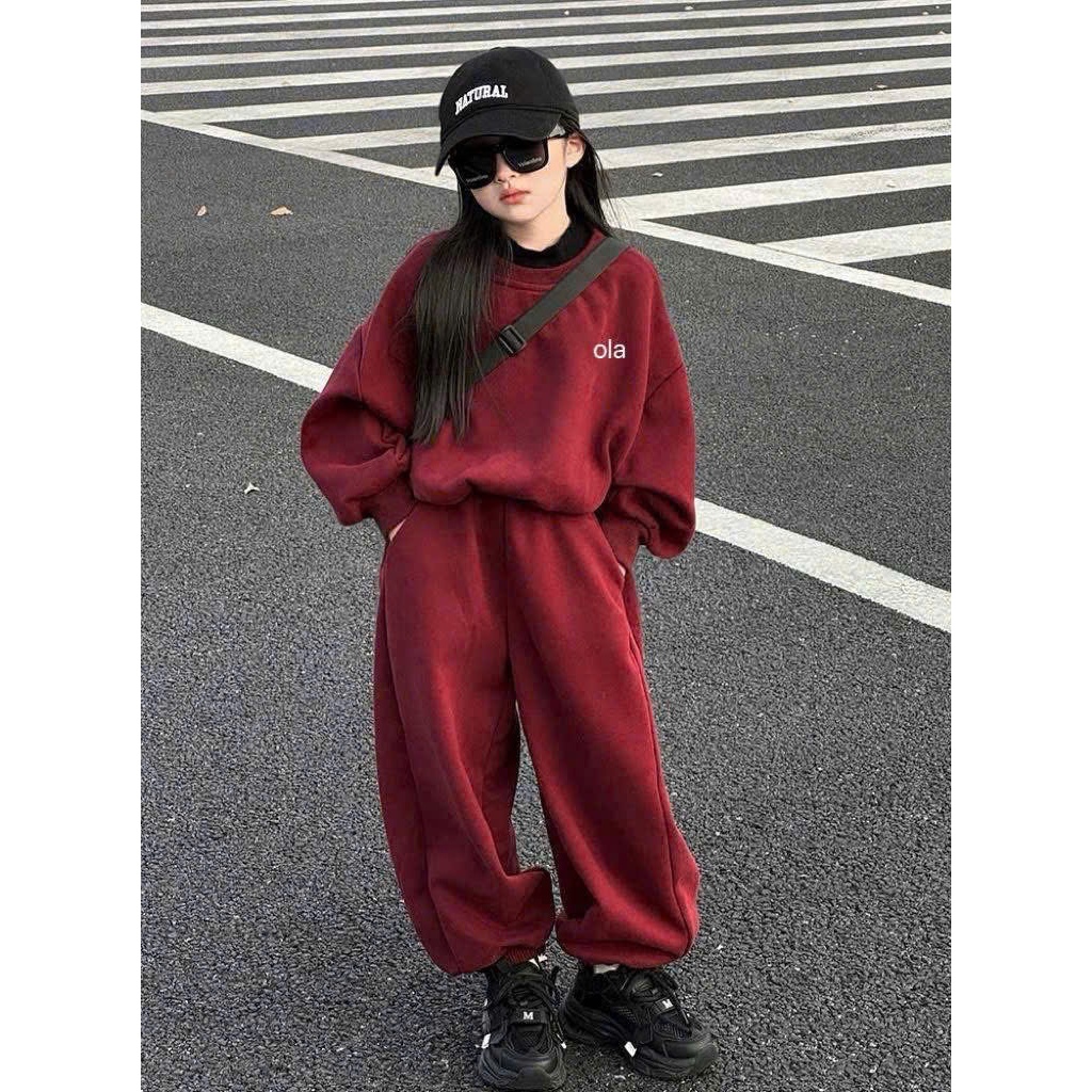 Sét bộ quần áo thu đông bé gái ( HỌA TIẾT OLALA 2 MÀU ĐỎ XANH ) chất liệu nỉ ấm áp size 9-44kg M89