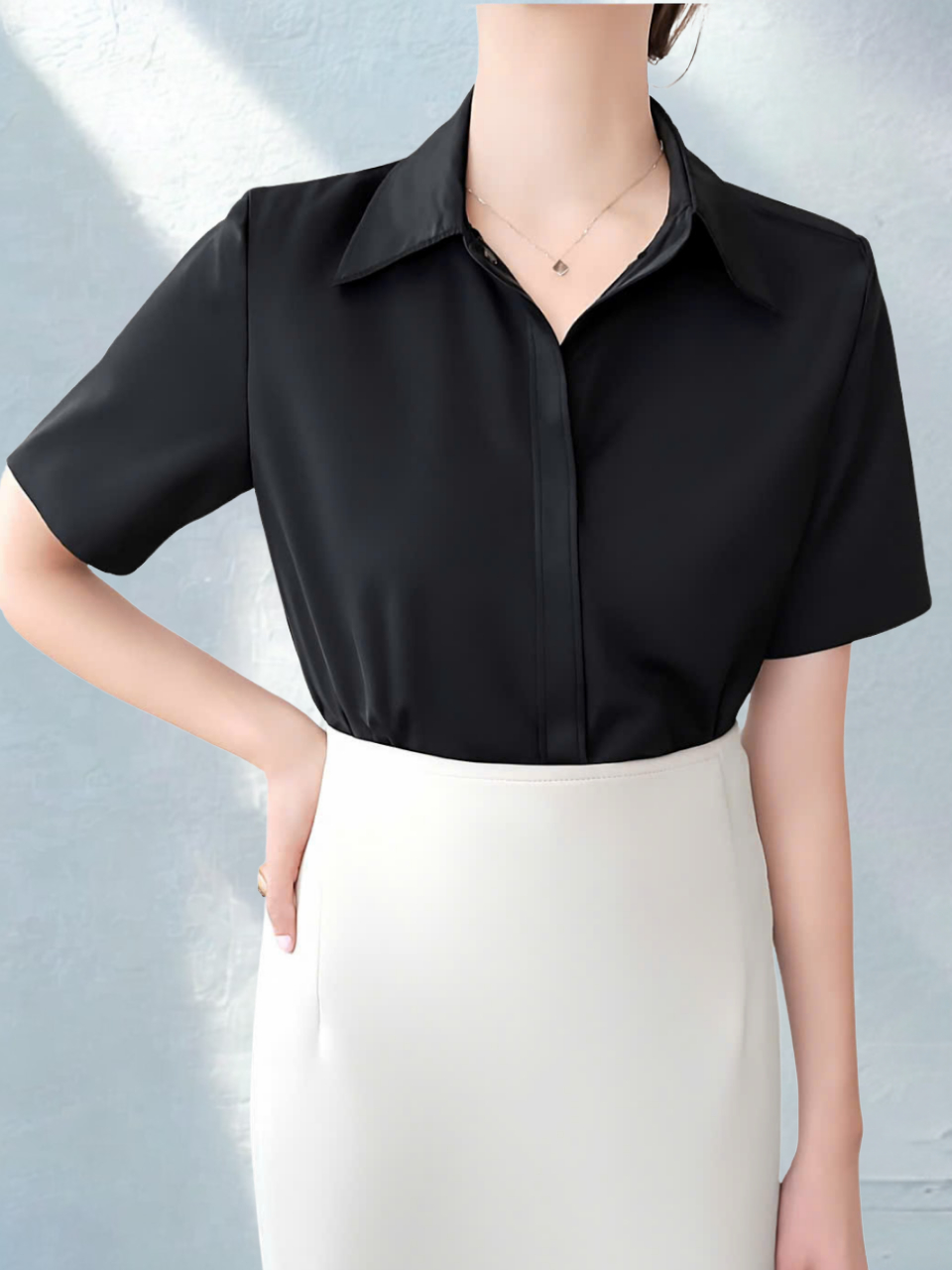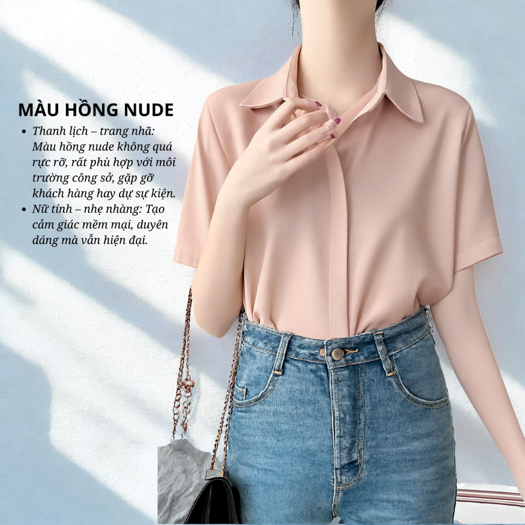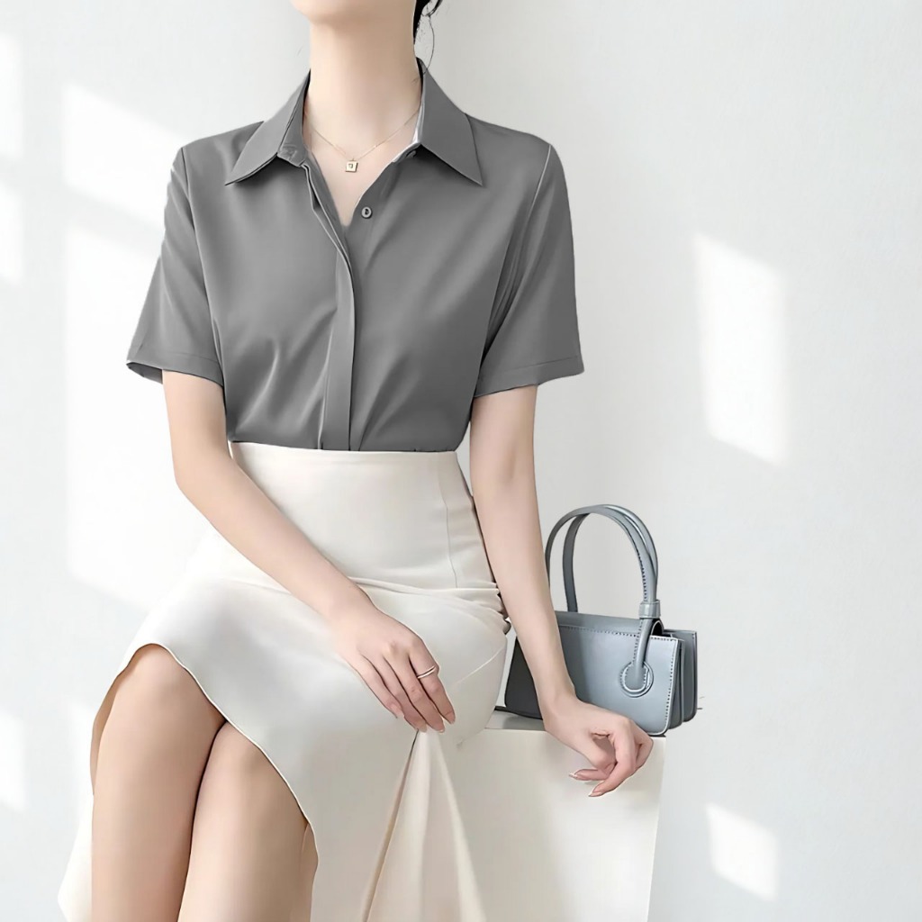Áo sơ mi nữ tay cộc OXATYL A55 chất vải lụa mềm mặc mùa hè phong cách công sở sang trọng