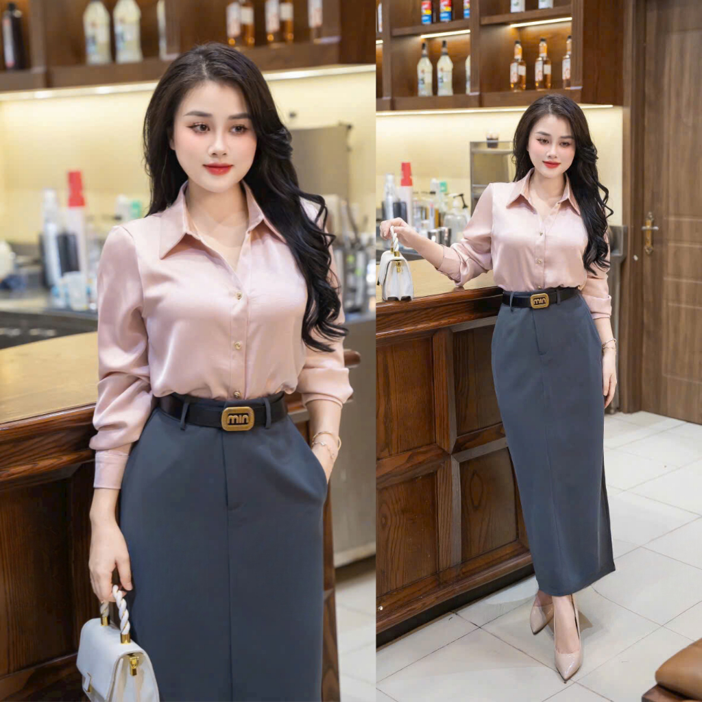Áo sơ mi lụa dài tay sang trọng thời trang công sở OXATYL A025