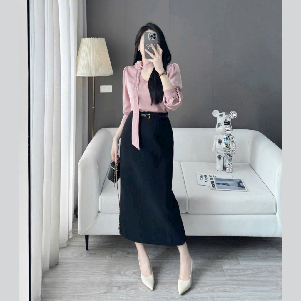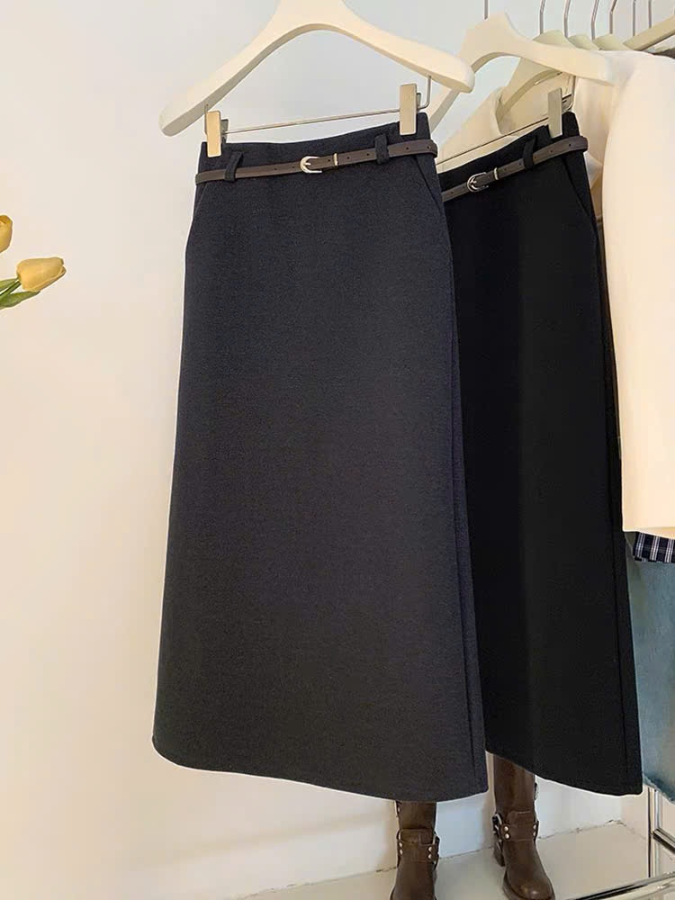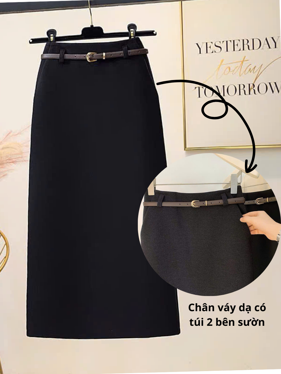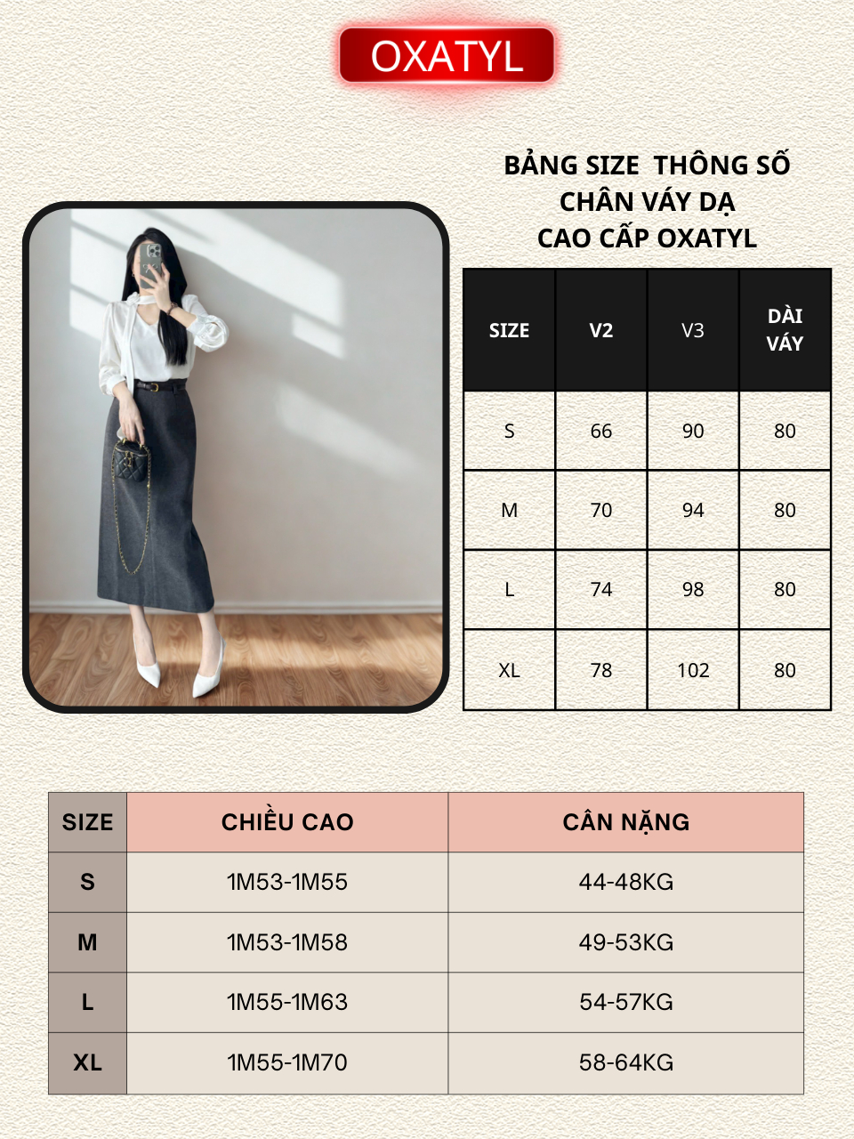 Chân váy dạ dài 80cm váy quảng châu cao cấp chất dạ dày mịn dáng váy chữ a OXATYL V641