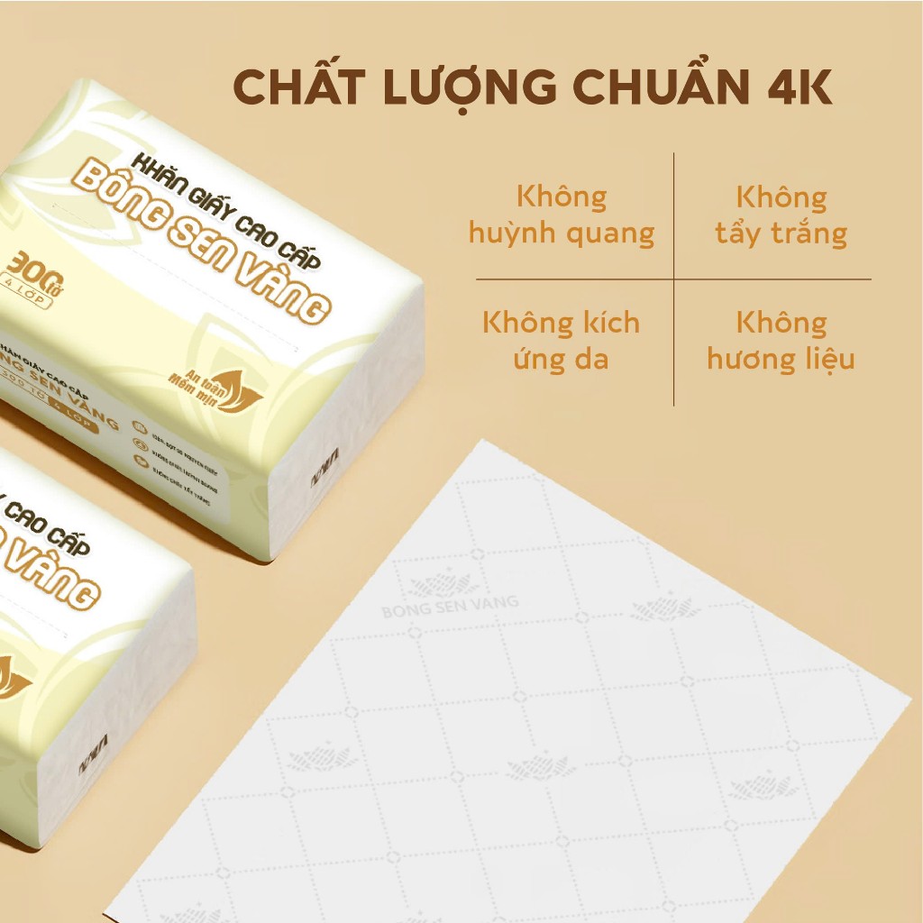 Thùng Giấy ăn cao cấp Bông Sen Vàng 4 lớp mềm mịn, an toàn, tiện lợi.