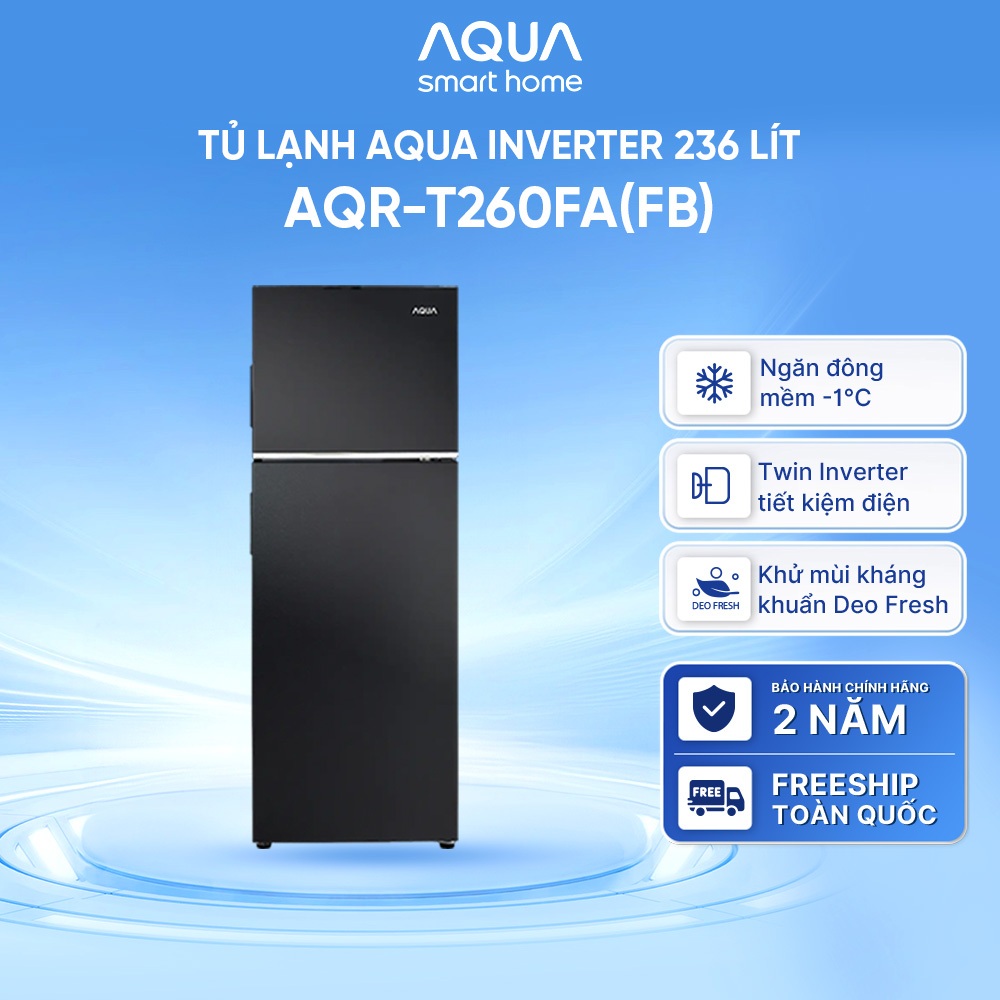 [SALE] Tủ lạnh Aqua Inverter 236 lít AQR-T260FA(FB) - Bảo hành 2 năm - Hàng chính hãng