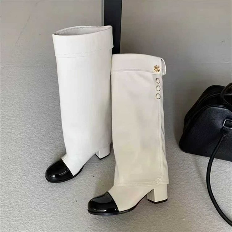 W Mùa Đông Phong Cách Mới Mũi Tròn Dày Gót Cao Gót Ống Cao Tay Thời Trang PU Thời Trang Mặc Ngoài Trời Chống Trơn Trượt Chống Mài Mòn Ống Dài Nhà Máy Giá Bán Buôn