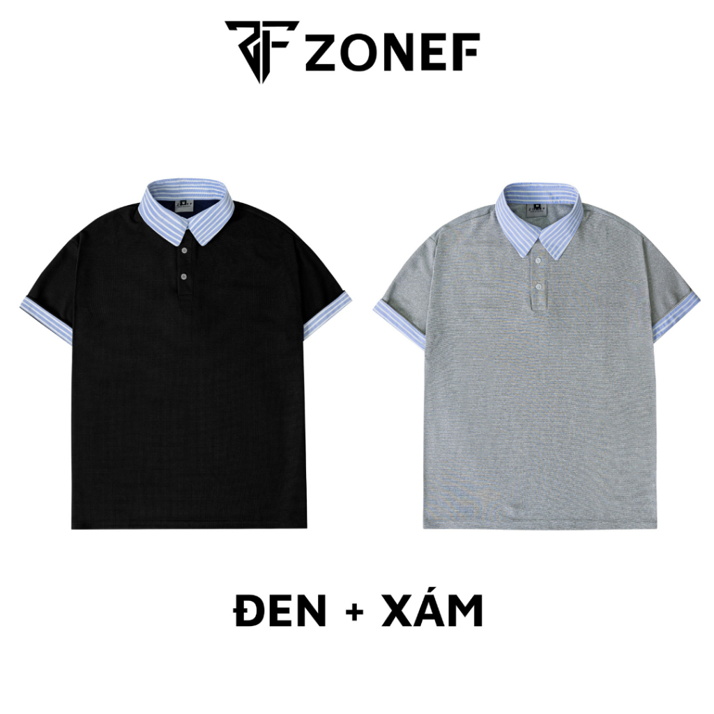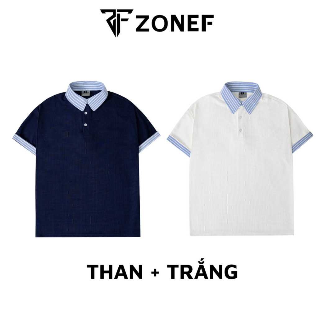 Áo Polo Ngắn Tay Phối Sơ Mi ZONEF STUDIO Kẻ Sọc Xanh Cổ Bẻ Nam Nữ Unisex Vải Cotton Tổ Ong Cao Cấp Thoáng Mát ACK