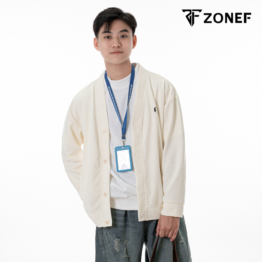 Áo Cardigan Logo Thêu ZONEF STUDIO Phong Cách Hàn Quốc Chất Vải Cotton Tổ Ong, Áo Khoác Thu Đông Nam Nữ Unisex CAN