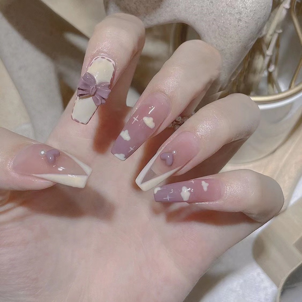 Móng tay giả đính đá /Kèm keo/ nail xinh [WR1-100]