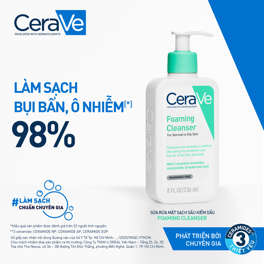 Sữa rửa mặt foaming giúp làm sạch sâu và dưỡng ẩm dịu nhẹ dành cho da dầu - CeraVe Foaming Facial Cleanser 236ML