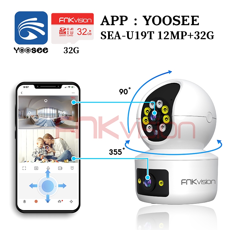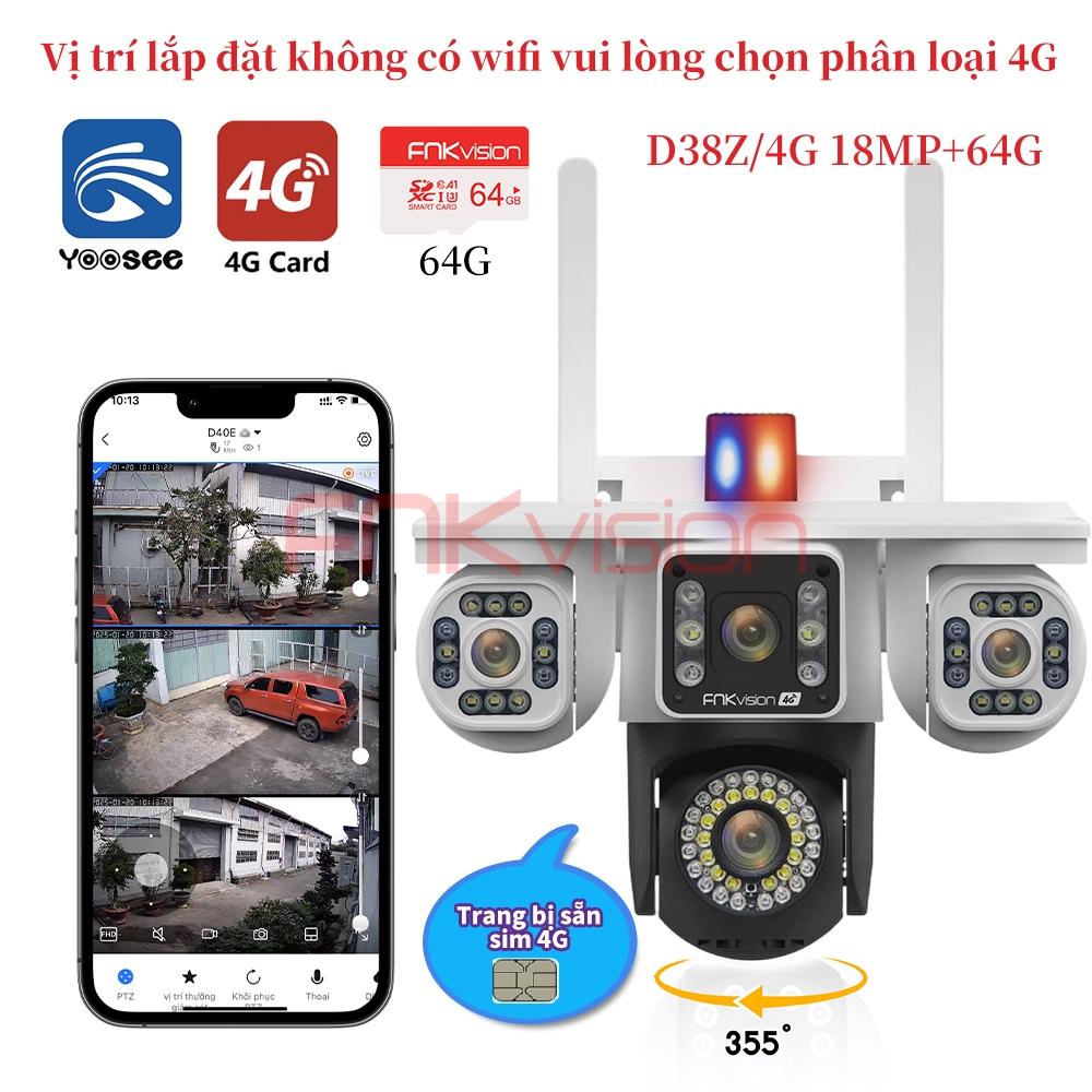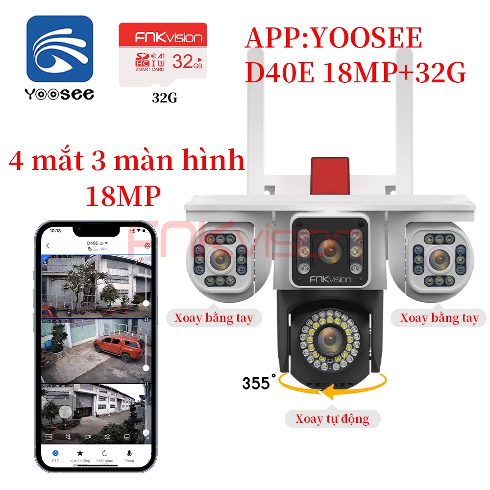Camera Fnkvision 2 mắt / 3 mắt Yoosee, chống nước quan sát 360 độ cực rõ nét 18MP, thao tác qua điện thoại