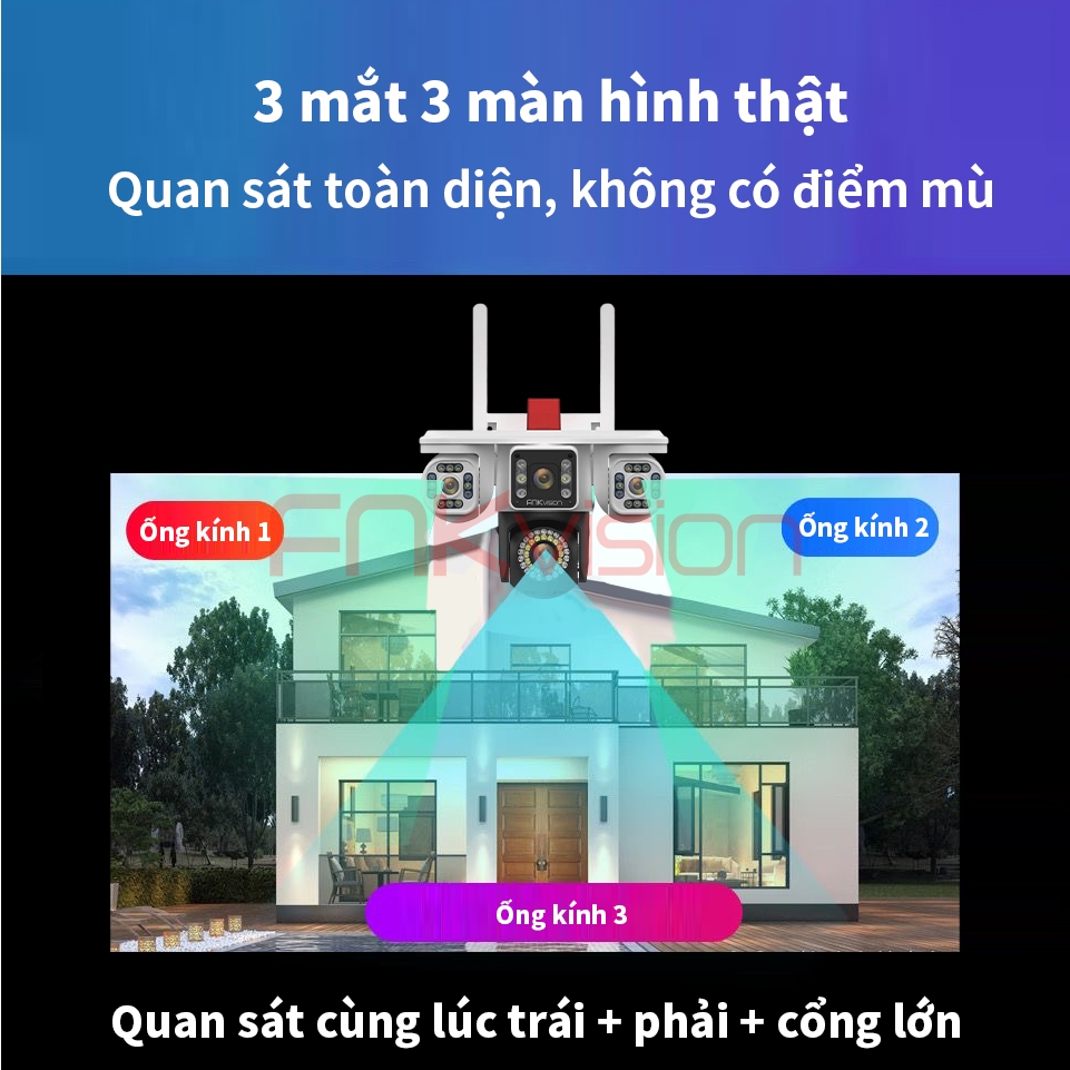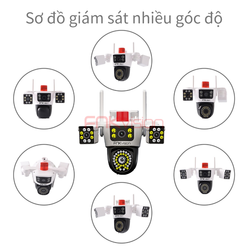 [Fnkvision] Camera YOOSEE Ngoài Trời 4 mắt (Xoay Được 3 Mắt) 3 Màn Hình Độ Phân Giải 18MP Tích Hợp 56 LED Nét OK