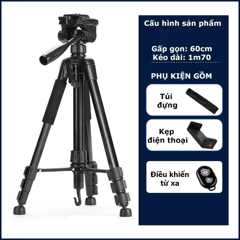 Chân Quay Máy Ảnh,Tripod Điện Thoại Tripod 360° Tặng Kèm Remote - Thiết Kế Chắc Chắn