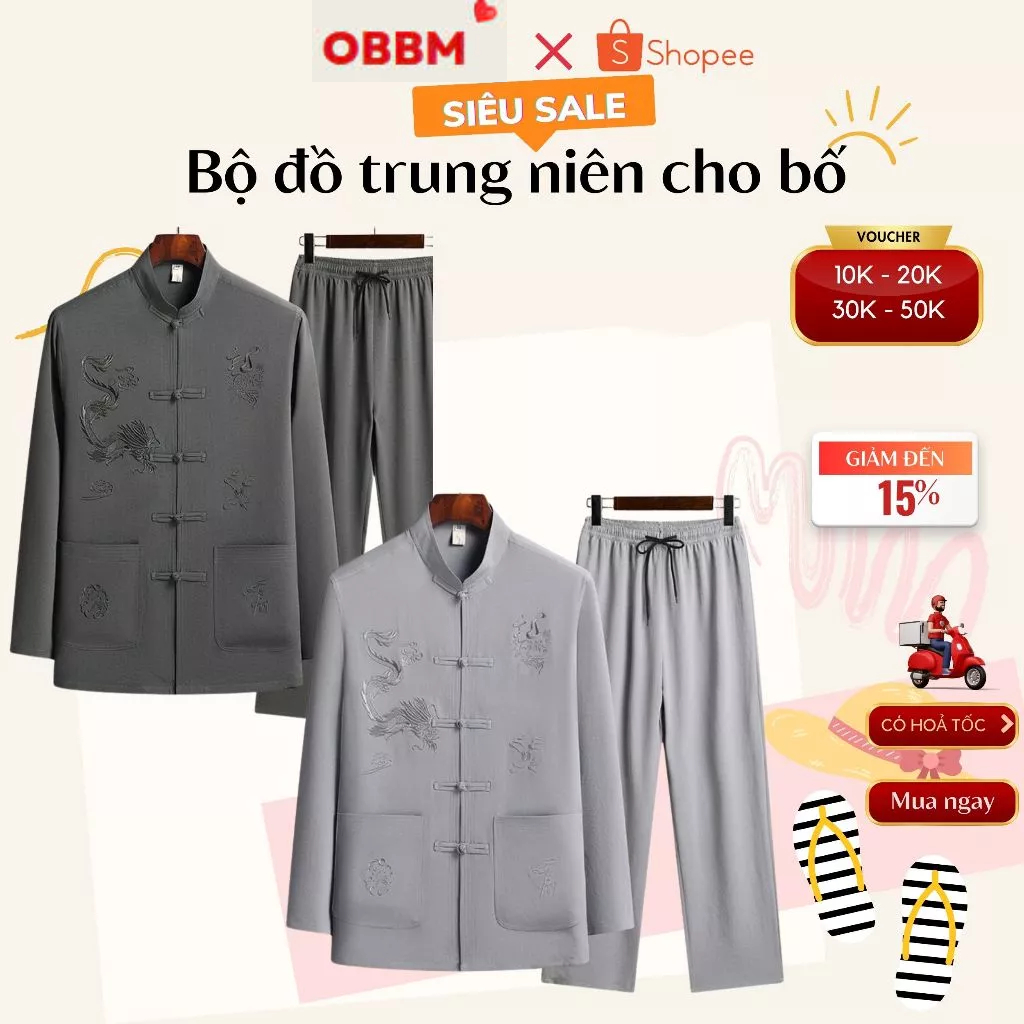 Bộ quần áo cổ tàu dài tay người già trung niên, CTD2
