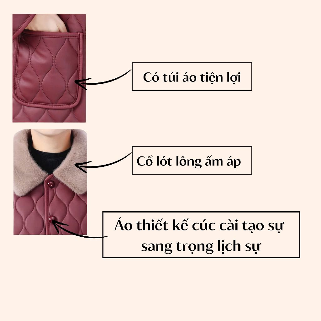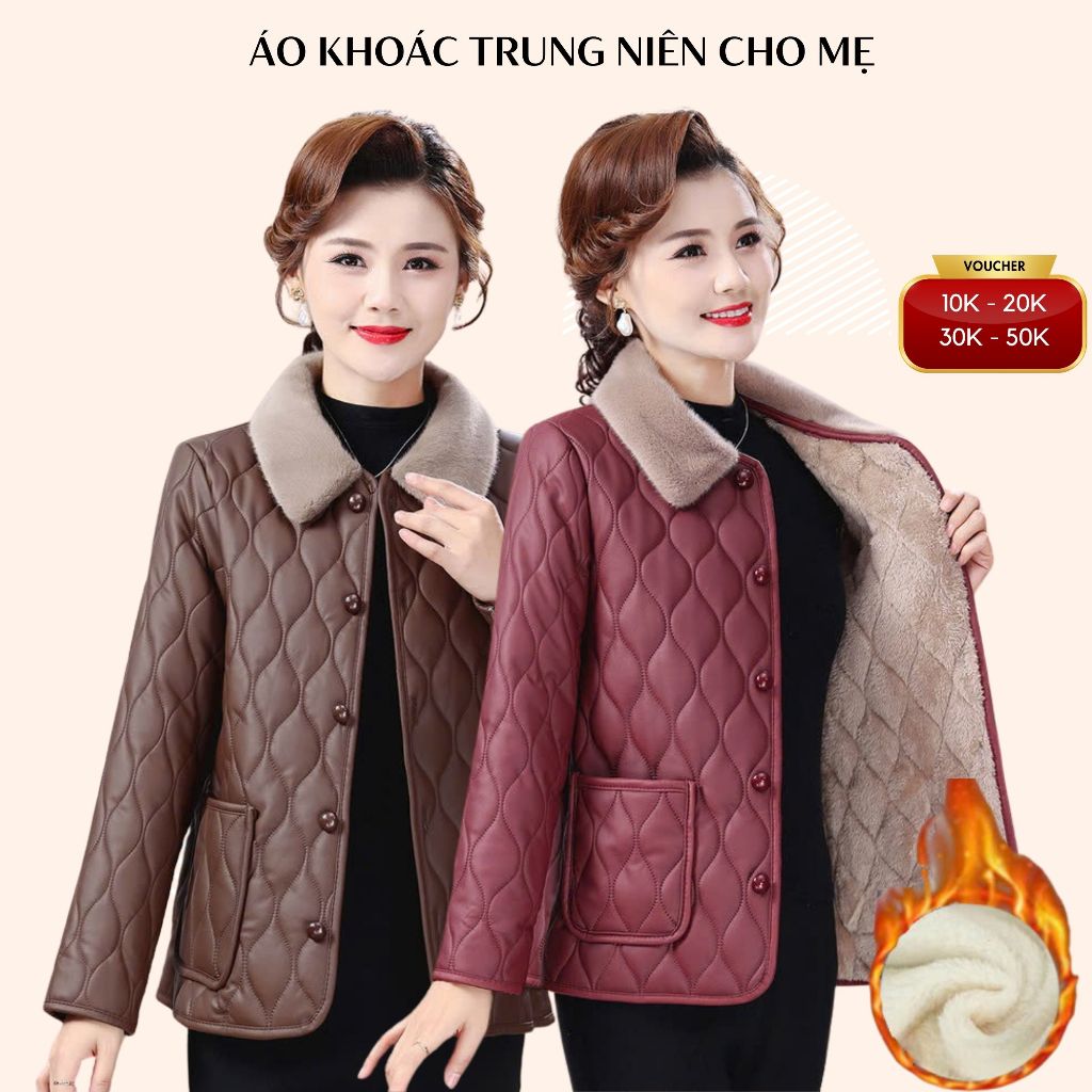 Áo khoác trung niên cho mẹ, áo khoác trong lót lông ấm áp sang trọng cho mẹ_loại 1 mới về