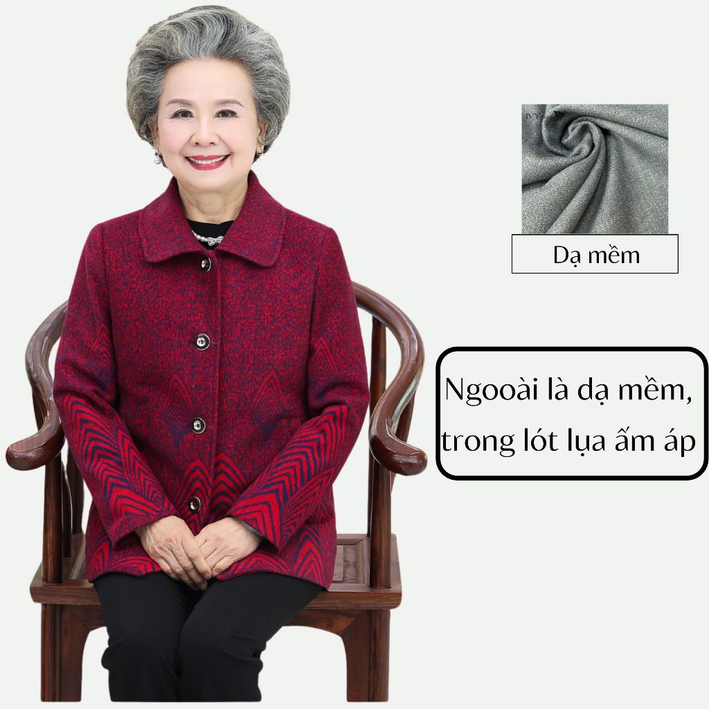 Áo khoác trung niên 2 lớp- lót lụa phía trong tặng mẹ tặng bà sang trọng, khoác dạ mềm