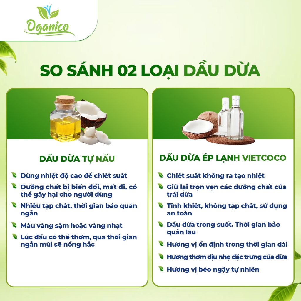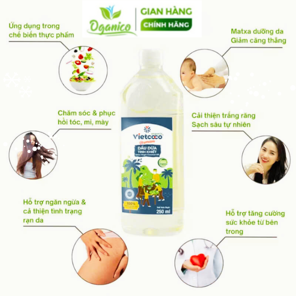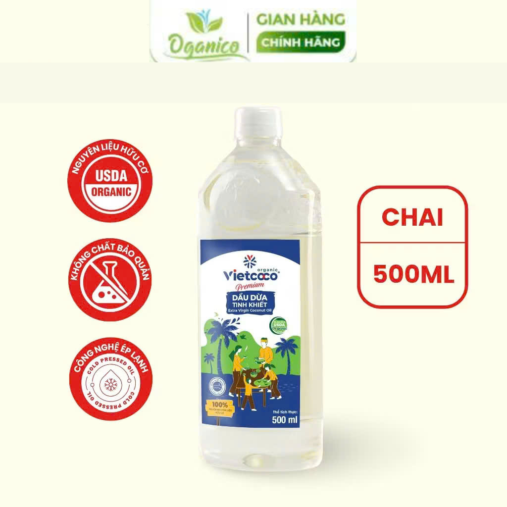 Dầu dừa ép lạnh nguyên chất tinh khiết hữu cơ Vietcoco - Dầu dừa ăn uống, ủ dưỡng tóc, dưỡng da, súc miệng oganico tk
