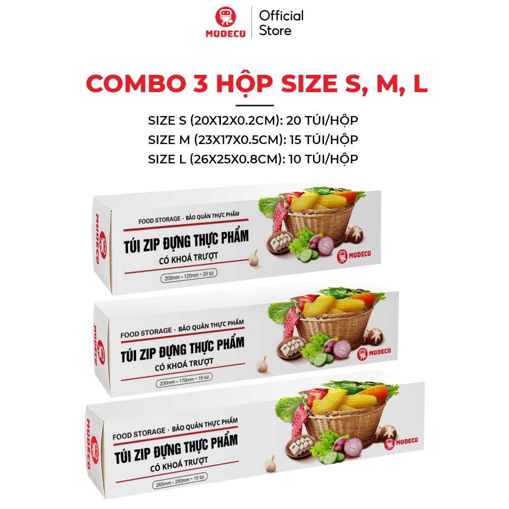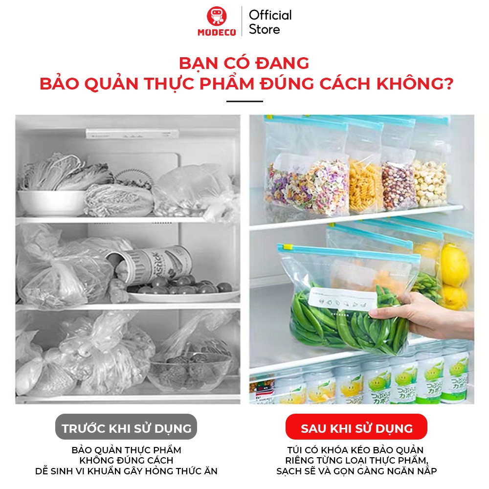Túi Zip Đựng Thực Phẩm Cao Cấp Modeco - Bảo Quản Thức Ăn, Đồ Khô, Đồ Tươi Sống Trong Tủ Lạnh - An Toàn, Tái Sử Dụng