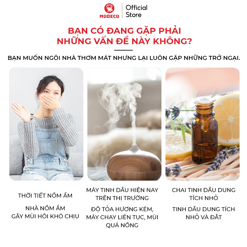 Máy Xông Tinh Dầu Cao Cấp AM03 Modeco 2025 - 5 Chế Độ Tự Động Khuếch Tán Phun Sương Thơm Phòng Ngủ, Phòng Khách
