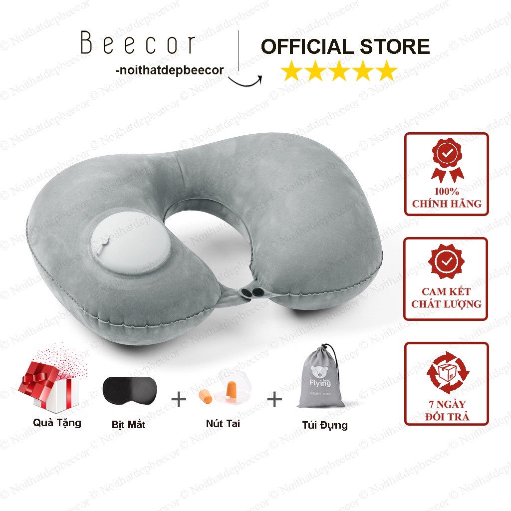 [MUA 1 TẶNG 3] Gối chữ U tự bơm hơi gấp xách nhỏ gọn tiện lợi - Gối kê cổ văn phòng du lịch đi xe ô tô TẶNG Bịt mắt ngủ