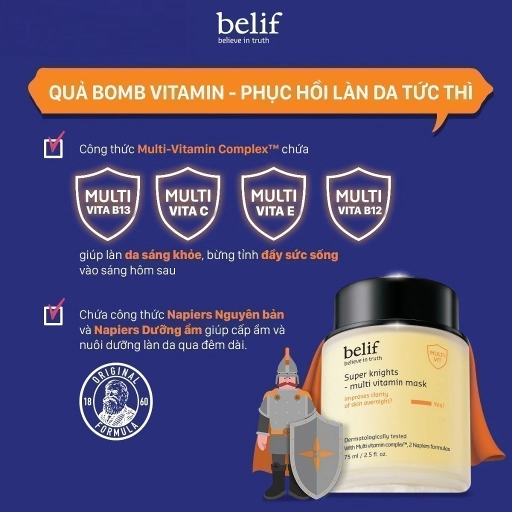 Mặt nạ ngủ cấp nước sáng da Belif Super Knights Multi Vitamin Mask